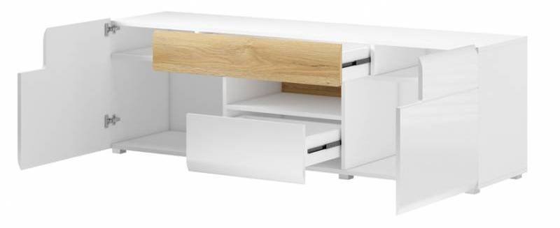 Wir präsentieren Ihnen den TV-Schrank Toledo 2 – die perfekte Wahl für jedes moderne Wohnzimmer, die ästhetische Attraktivität und Praktikabilität vereint. Seine Maße von 159x39,3x47 cm sind ideal für kleinere und größere Wohnzimmer, in denen Sie ein elegantes und aufgeräumtes Ambiente schaffen möchten.