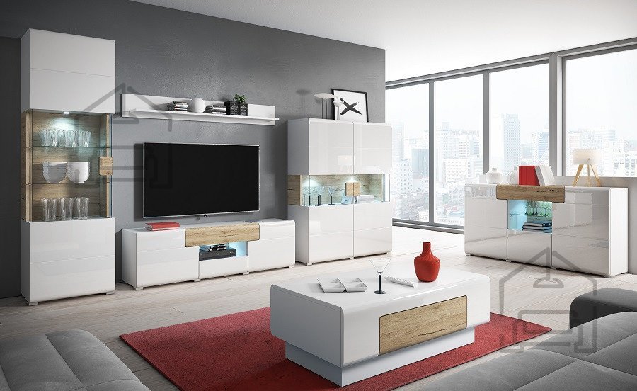 Wir präsentieren Ihnen das außergewöhnliche Regal Toledo, das elegante Ästhetik und Funktionalität vereint. Die raffinierte weiße Farbe des Korpus in Kombination mit den warmen Tönen der San Remo Eiche schafft ein ansprechendes Möbelstück, das sich mühelos in jedes Zuhause einfügt. Das Regal Toledo ist aus hochwertigem MDF-Material gefertigt, das Stabilität und Langlebigkeit garantiert, was bedeutet, dass dieses Möbelstück über viele Jahre schön und funktional bleibt.