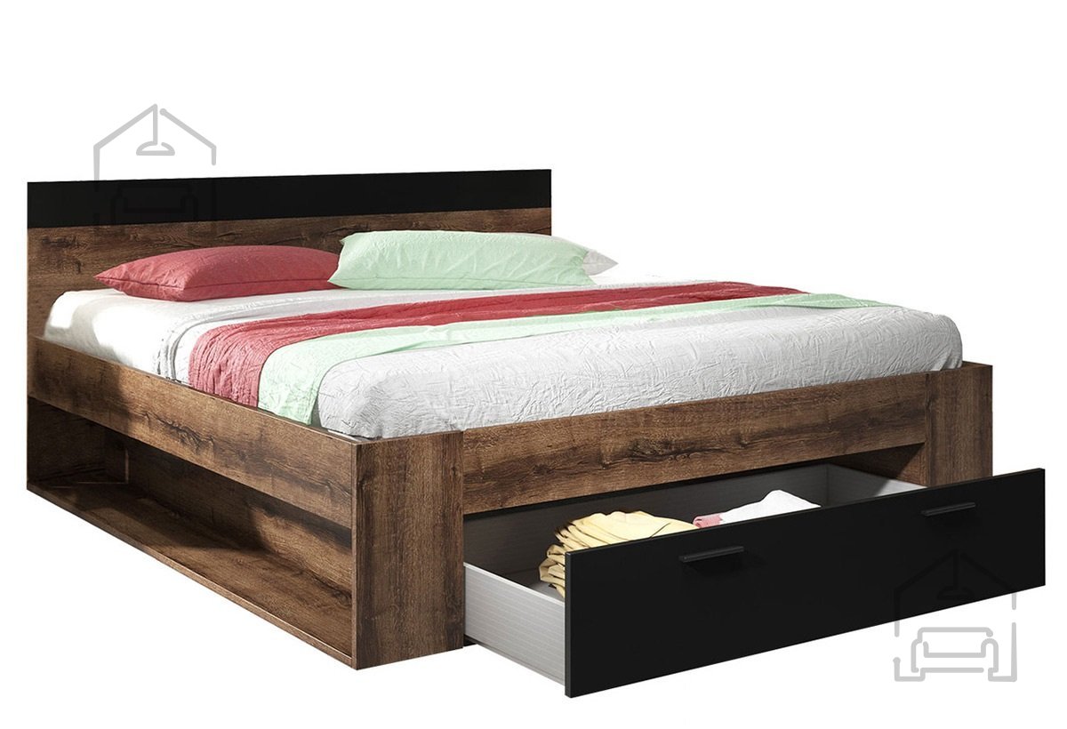Mit der Kombination aus dunkler Eiche für den Korpus und elegantem Schwarz an der Front bringt das Bett Beta einen Hauch moderner Eleganz in Ihr Schlafzimmer. Die dunkle Eiche verleiht Wärme und eine natürliche Optik, während Schwarz einen Hauch von Modernität und Raffinesse hinzufügt. Diese Kombination ermöglicht eine einfache Abstimmung mit verschiedenen Stilelementen und Accessoires in Ihrem Raum.