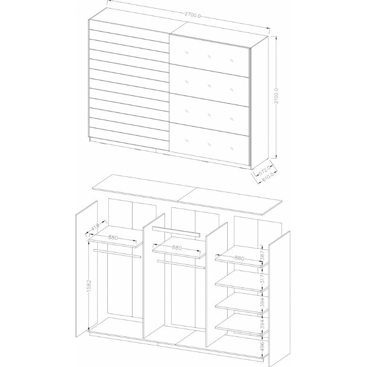 Wir präsentieren Ihnen den exklusiven Kleiderschrank Galaxy 3, der Eleganz, Funktionalität und höchste Qualität vereint. Dieser beeindruckende Schrank ist aus hochwertigem MDF-Material gefertigt, das Langlebigkeit und Widerstandsfähigkeit gewährleistet. Mit den Maßen 270x61x210 cm bietet er reichlich Platz zur Aufbewahrung und Organisation Ihrer Kleidung und Accessoires.