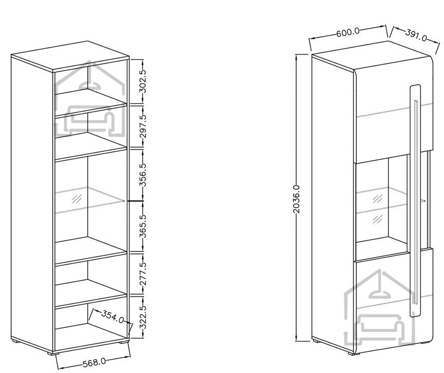 Die Maße des Produkts betragen 60x39.1x203.6 cm, was bedeutet, dass die Vitrine ausreichend Platz zur Aufbewahrung Ihrer Lieblingsgegenstände bietet. Ihre Höhe ermöglicht eine optimale Raumausnutzung, ohne dabei die visuelle Attraktivität des Raumes zu beeinträchtigen.