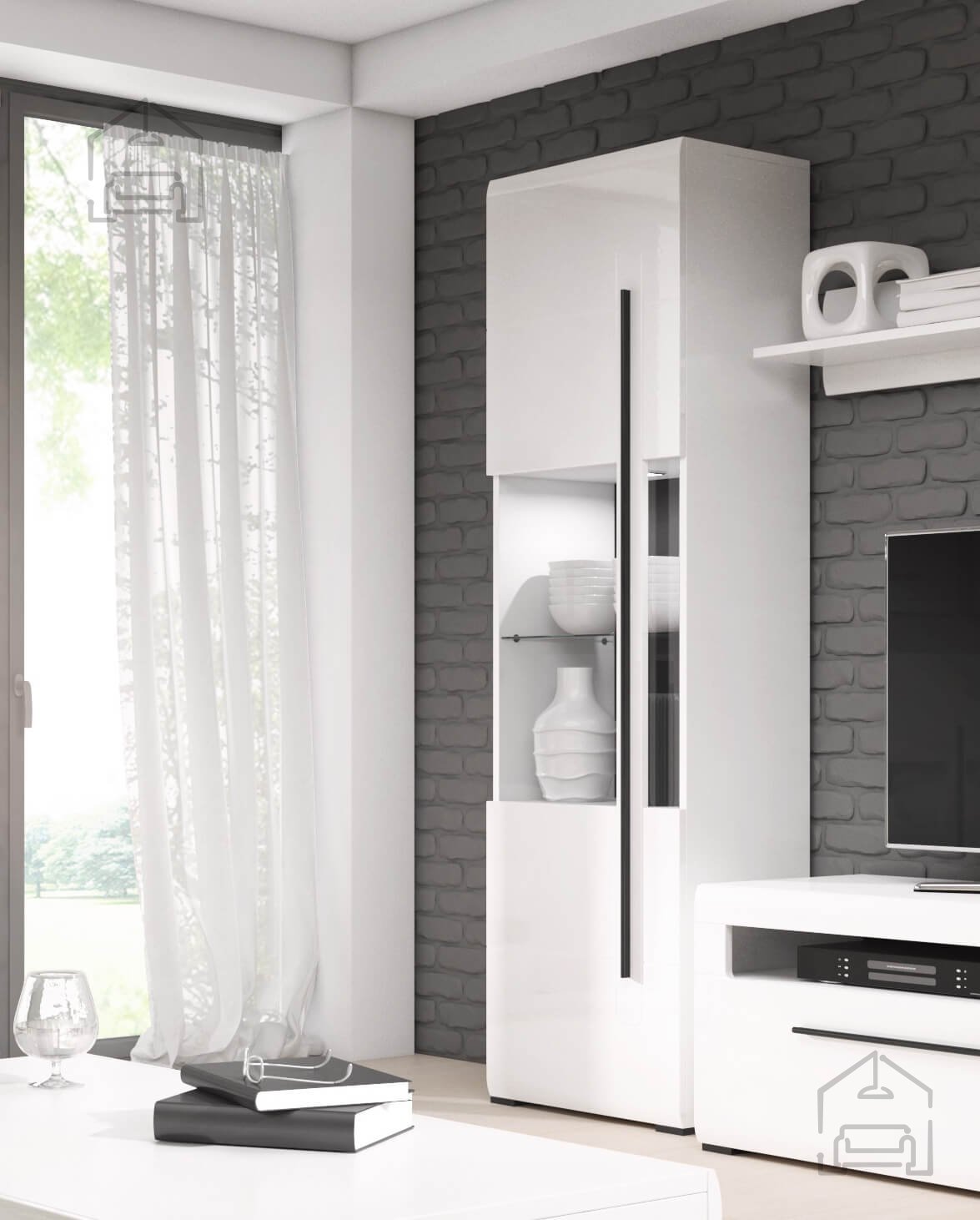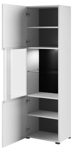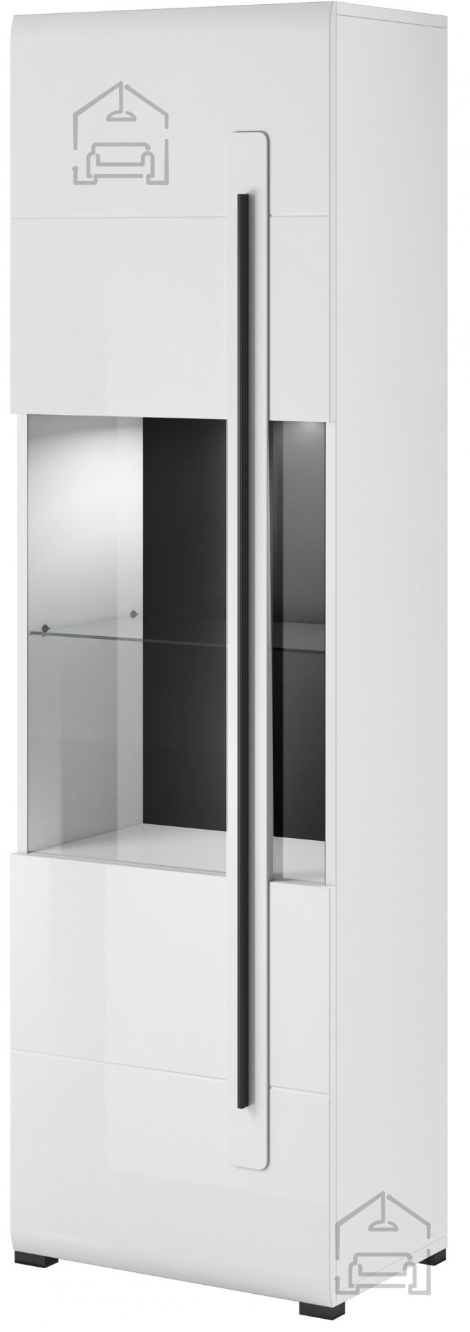 Die Vitrine Tulsa besteht aus MDF-Material, was ihr außergewöhnliche Robustheit und eine lange Lebensdauer verleiht. Ihr weißer Hochglanz-Finish an Korpus und Fronten trägt zu einem modernen und prestigeträchtigen Aussehen bei, das sich mühelos in jedes Interieur einfügt.