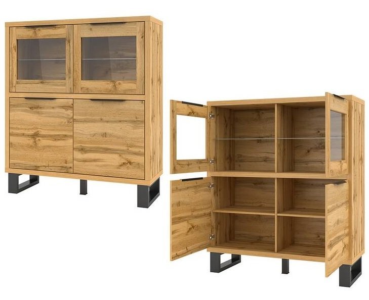 Wir präsentieren Ihnen die Kommode Halle 2 - 24N0HK42, eine perfekte Kombination aus Eleganz, Funktionalität und modernem Design, die Ihr Wohnzimmer oder jeden anderen Raum bereichern wird. Dieses außergewöhnliche Möbelstück ist aus hochwertigem MDF-Material gefertigt und stammt vom renommierten polnischen Hersteller Helvetia Meble, was höchste Verarbeitungsqualität und Langlebigkeit garantiert.