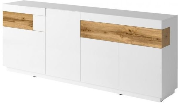 Die Kommode Silke 1 - Weiß/Votan-Eiche ist die perfekte Wahl für alle, die eine Kombination aus Stil, Funktionalität und Qualität suchen. Ihr einzigartiges Design, zusammen mit der Möglichkeit der LED-Beleuchtung, macht sie zu einem Spitzenprodukt modernen Mobiliars. Ganz gleich, ob Sie die Organisation Ihres Zuhauses verbessern oder einfach nur ein ästhetisches Element in Ihren Raum bringen möchten – diese Kommode ist die richtige Wahl für Sie. Zögern Sie nicht und fügen Sie ein Möbelstück hinzu, das ohne Zweifel zum Mittelpunkt der Aufmerksamkeit in Ihrem Zuhause wird.