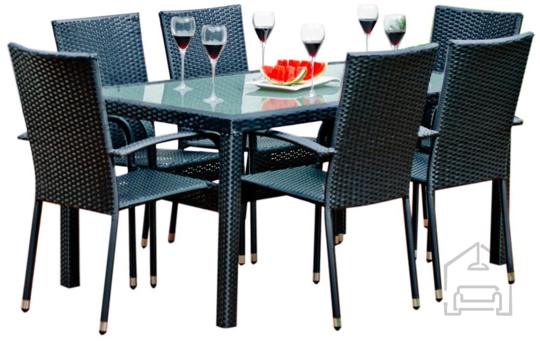 Das Set Avvicente umfasst sechs bequeme Stühle und einen großzügigen Tisch – ideal für gesellige Runden mit Familie oder Freunden. Der Stuhl mit den Maßen 56 × 50 × 84 cm ist ergonomisch geformt und bietet angenehmen Sitzkomfort sowie gute Rückenunterstützung – auch bei längeren Gesprächen oder Mahlzeiten im Freien. Der Tisch misst 150 × 90 × 74 cm – eine perfekte Größe für Mittagessen unter freiem Himmel, eine Tasse Kaffee am Nachmittag oder ein entspanntes Abendessen im Garten.