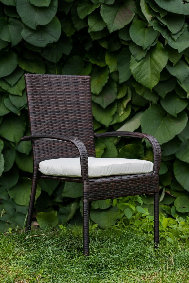 Für zusätzlichen Komfort können die Stühle mit weichen Sitzkissen in Ihrer Lieblingsfarbe ausgestattet werden – die dunkelbraune Grundfarbe harmoniert wunderbar mit neutralen Tönen, natürlichen Beigetönen oder frischen Sommerfarben. So gestalten Sie Ihren Gartenbereich ganz nach Saison und Stimmung.