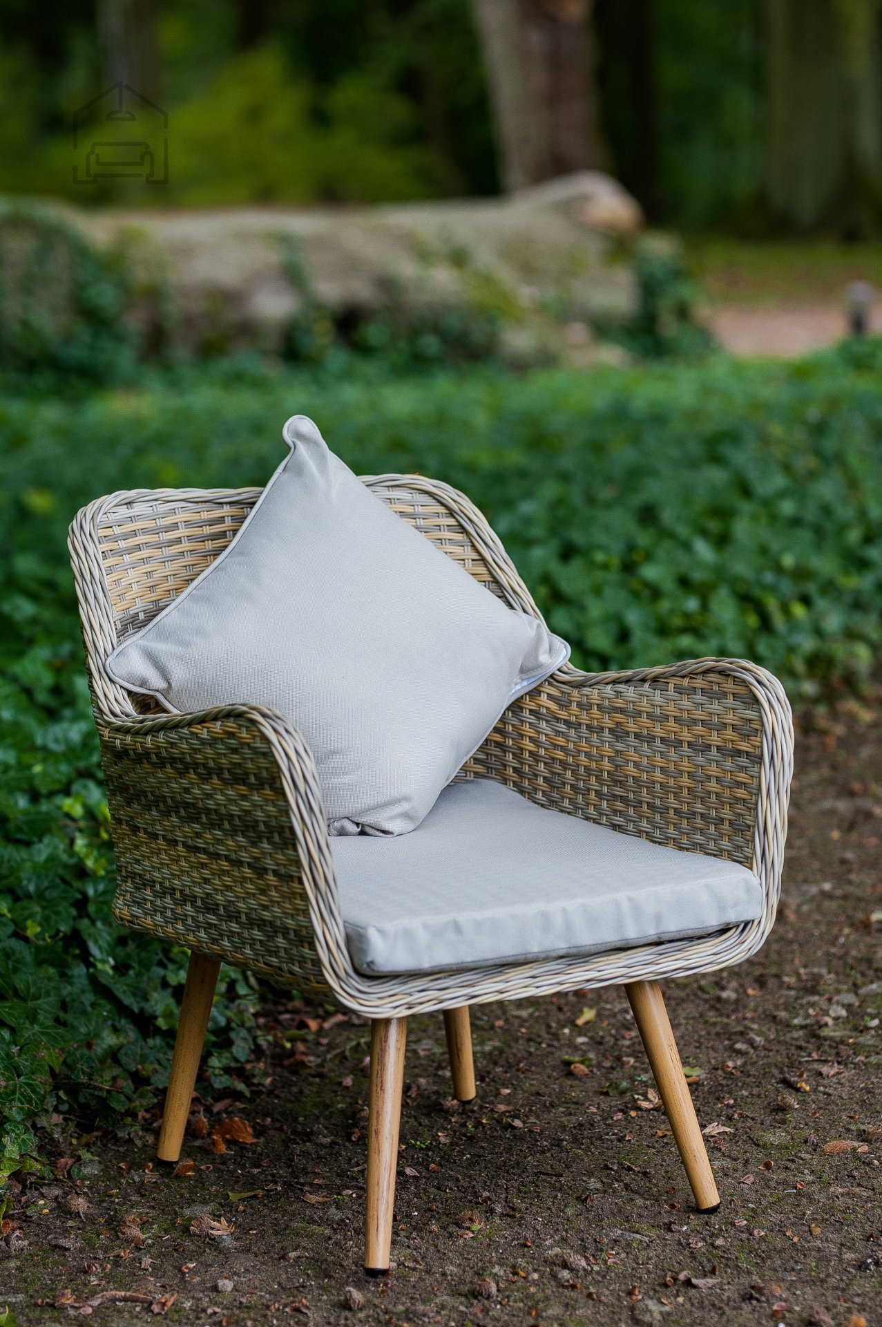 Zum Set gehören hellgraue Sitzkissen, die perfekt mit der eleganten Technorattan-Struktur harmonieren. Die Kissen sind im Preis inbegriffen und mit abnehmbaren Bezügen samt Reißverschluss ausgestattet, was die Reinigung besonders einfach macht. Die Bezüge bestehen aus 100 % Polyester – einem wasserabweisenden und schnell trocknenden Material, das sich ideal für den Außenbereich eignet. Nach einem sommerlichen Regenschauer trocknen die Kissen rasch, sodass Sie schon bald wieder Platz nehmen können.