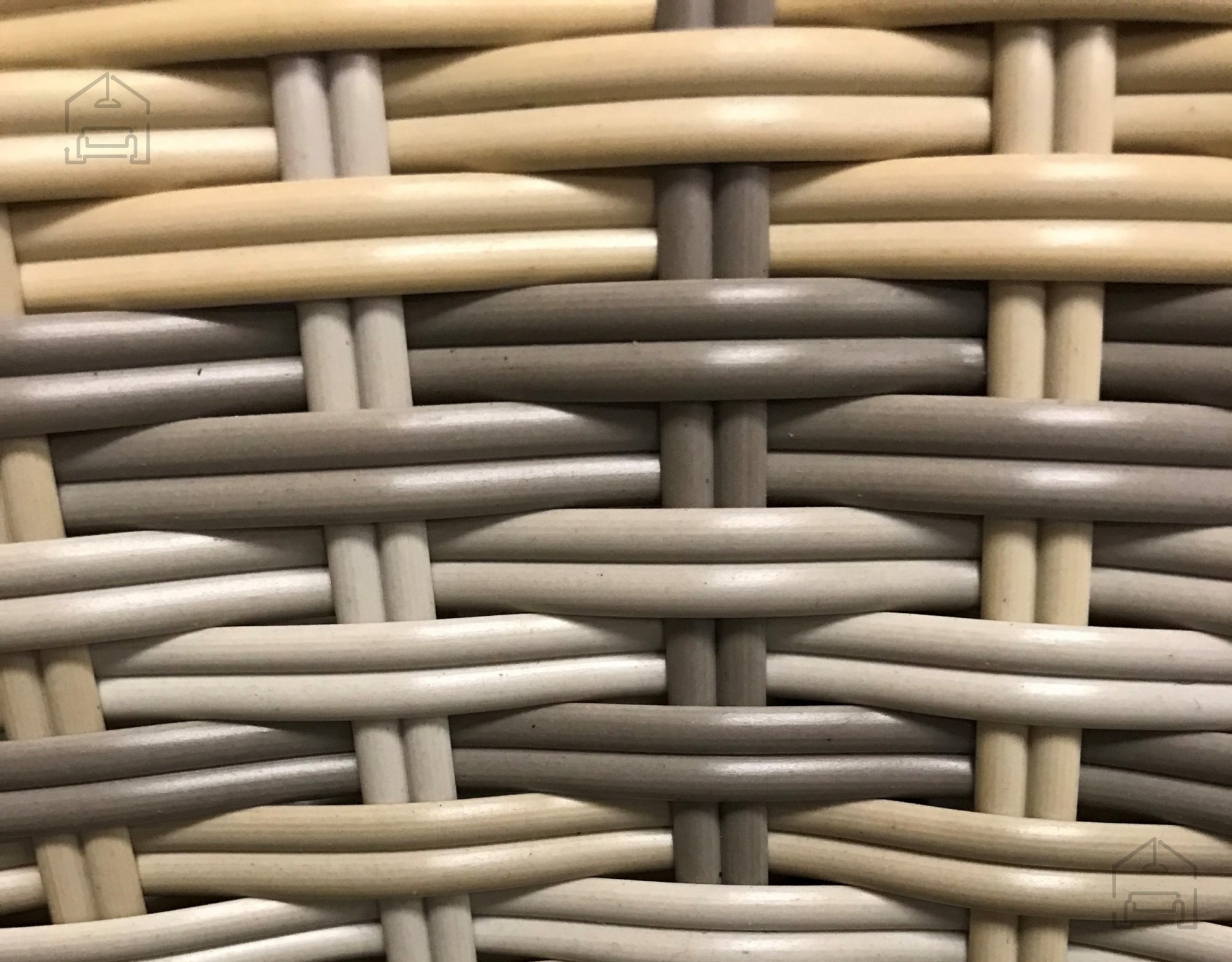 Das Flechtwerk besteht aus Technorattan mit einem Durchmesser von 7–8 x 1,2 mm – einem hochwertigen, synthetischen Material, das natürlichem Rattan ähnelt, jedoch deutlich robuster ist. Diese Struktur macht es vollkommen resistent gegen UV-Strahlen, Feuchtigkeit und Frost, sodass das Möbelstück seine Farbe und Form über viele Saisonen hinweg behält. Die Oberfläche ist pflegeleicht – meist reicht ein feuchtes Tuch oder etwas milde Seifenlauge.