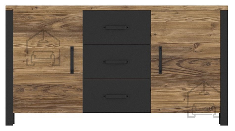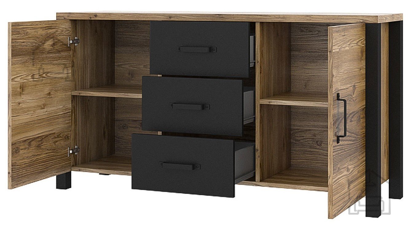 Wählen Sie die Kommode mit Doppeltüren Olin und bringen Sie noch heute industrielle Eleganz in Ihr Zuhause!