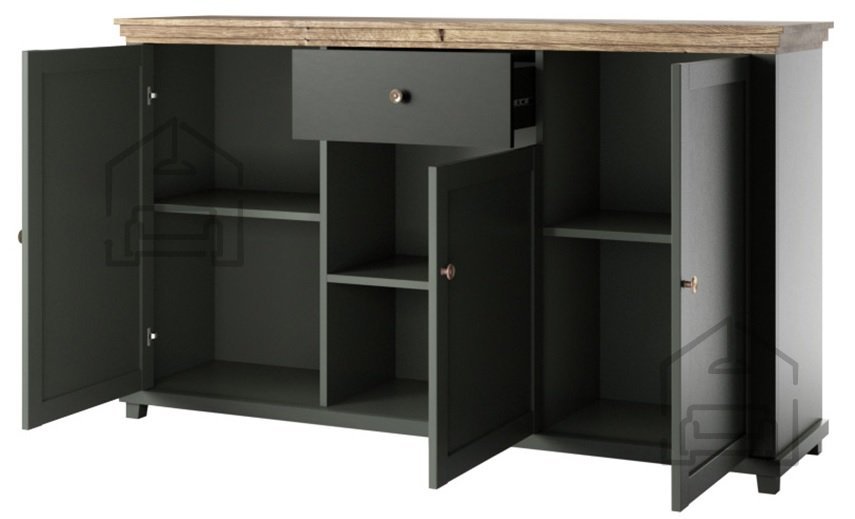 Die Kommode 3 Evora ist nicht nur ein Möbelstück, sondern ein Statement für Stil und Funktionalität. Wenn Sie die Ästhetik Ihres Zuhauses verbessern und gleichzeitig eine praktische Aufbewahrungslösung schaffen möchten, ist diese Kommode die ideale Wahl für Sie. Ihre Farbkombination aus Grün und Eiche ergänzt verschiedene Einrichtungsstile, von skandinavischem Minimalismus bis hin zu rustikalem Charme.