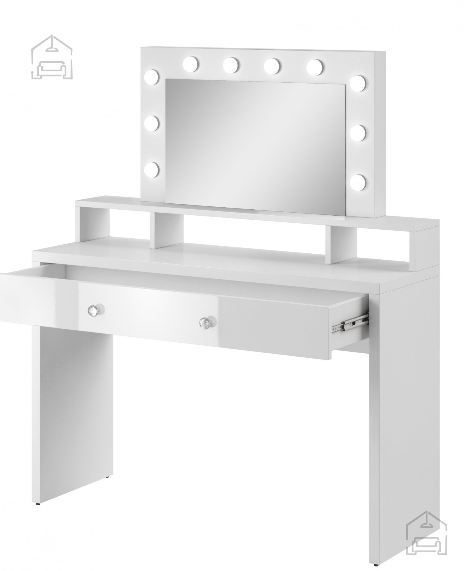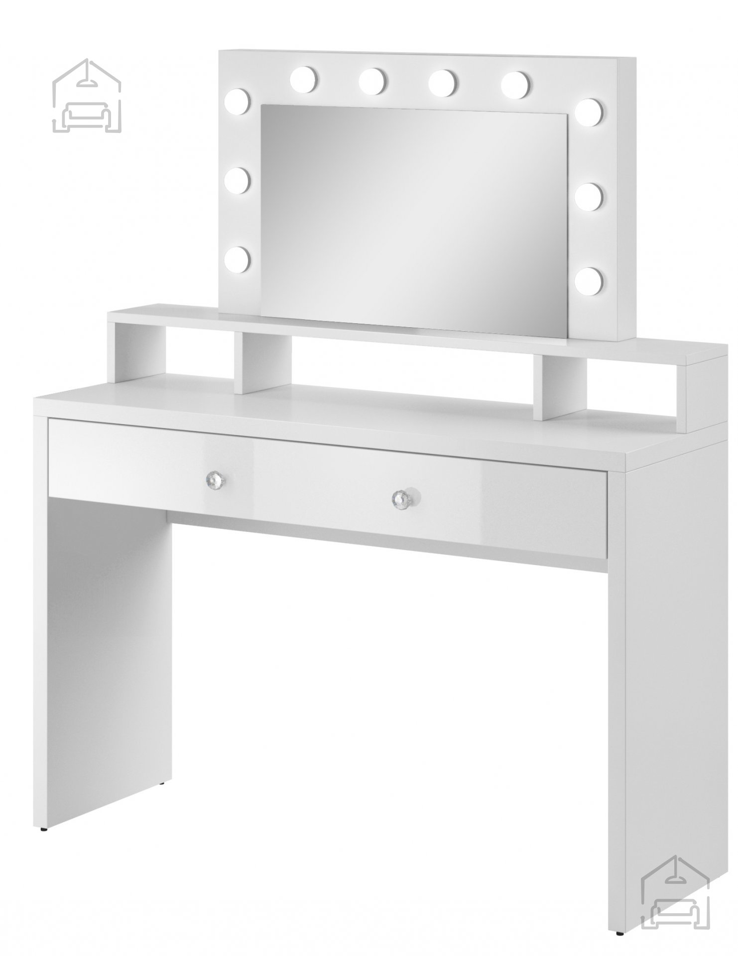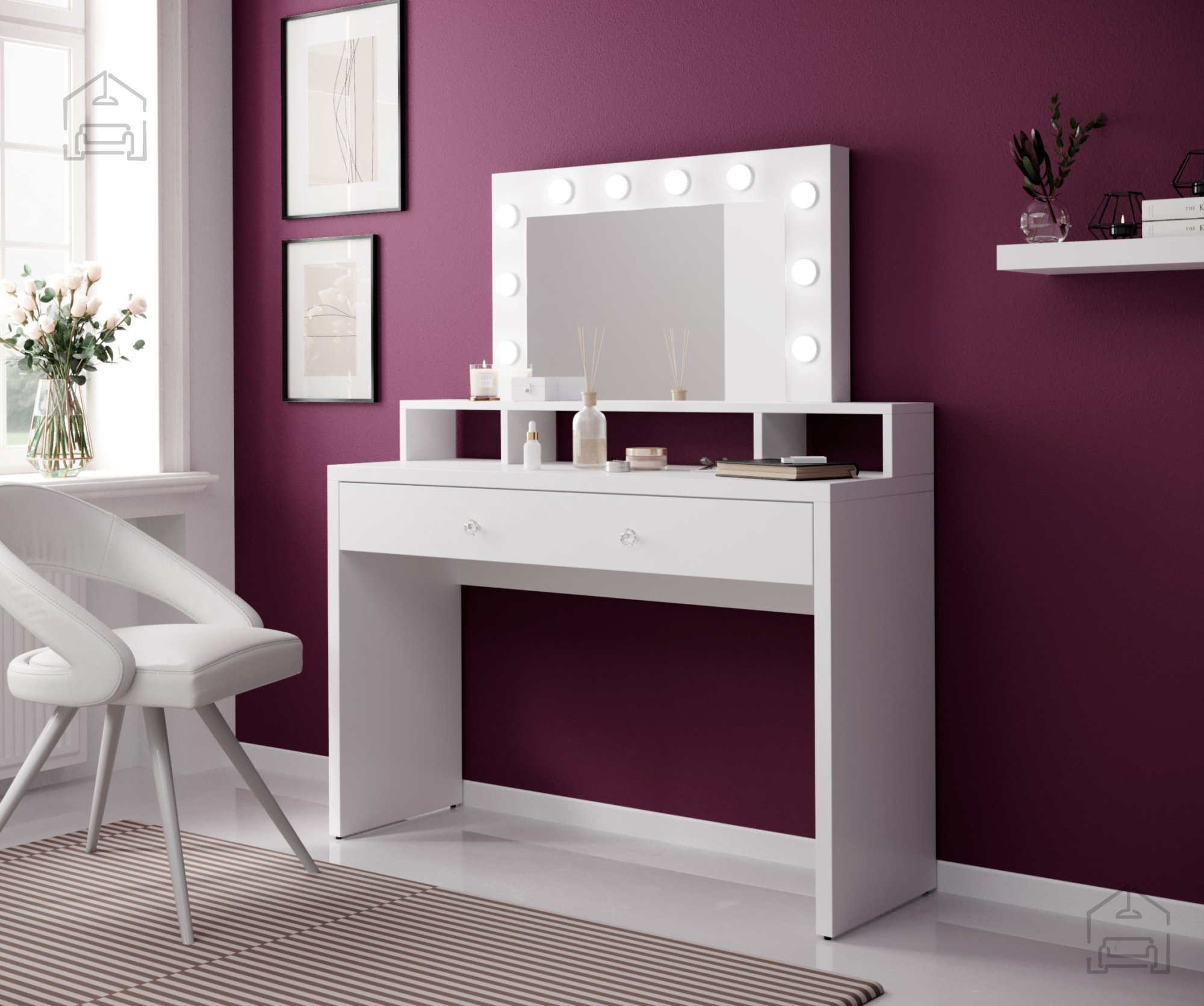 Der Schminktisch Diva mit Spiegel und 1 Schublade bietet mehr als nur Platz zum Schminken. Er dient auch als Schreibtisch, sodass Sie nicht zwischen Funktionalität und Ästhetik wählen müssen. Es gibt genügend Platz für Ihre Kosmetikartikel sowie für Schreibutensilien und Laptop. So ist der Schminktisch Aria das perfekte Möbelstück für alle, die Organisation und Vielseitigkeit in ihrem Leben schätzen.