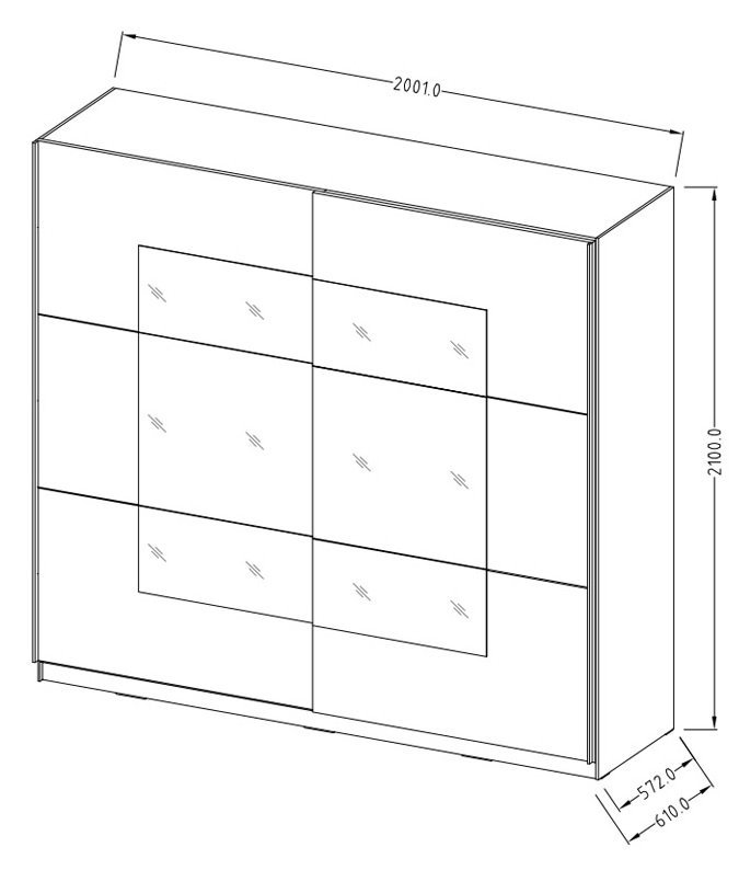 Wir präsentieren Ihnen den eleganten Kleiderschrank mit Schiebetüren Beta 200 cm, der Funktionalität und modernes Design vereint. Dieser außergewöhnliche Schrank ist die ideale Lösung für alle, die Praktikabilität und ästhetische Vollendung in einem suchen. Mit den Maßen 201x61x210 cm bietet er reichlich Stauraum für Ihre Kleidung und Accessoires und passt sich gleichzeitig perfekt in jeden Raum Ihres Zuhauses ein.