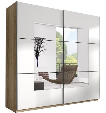 Der ästhetisch gestaltete Kleiderschrank Beta mit seinen Schiebetüren bietet eine elegante Aufbewahrungslösung. Die Farbkombination aus San-Remo-Eiche und Weiß schafft ein harmonisches und modernes Erscheinungsbild, das sich leicht an verschiedene Einrichtungsstile anpasst. Die Schiebetüren sparen nicht nur Platz, sondern ermöglichen auch einen einfachen Zugang zum Schrankinhalt – besonders praktisch für kleinere Wohnungen.