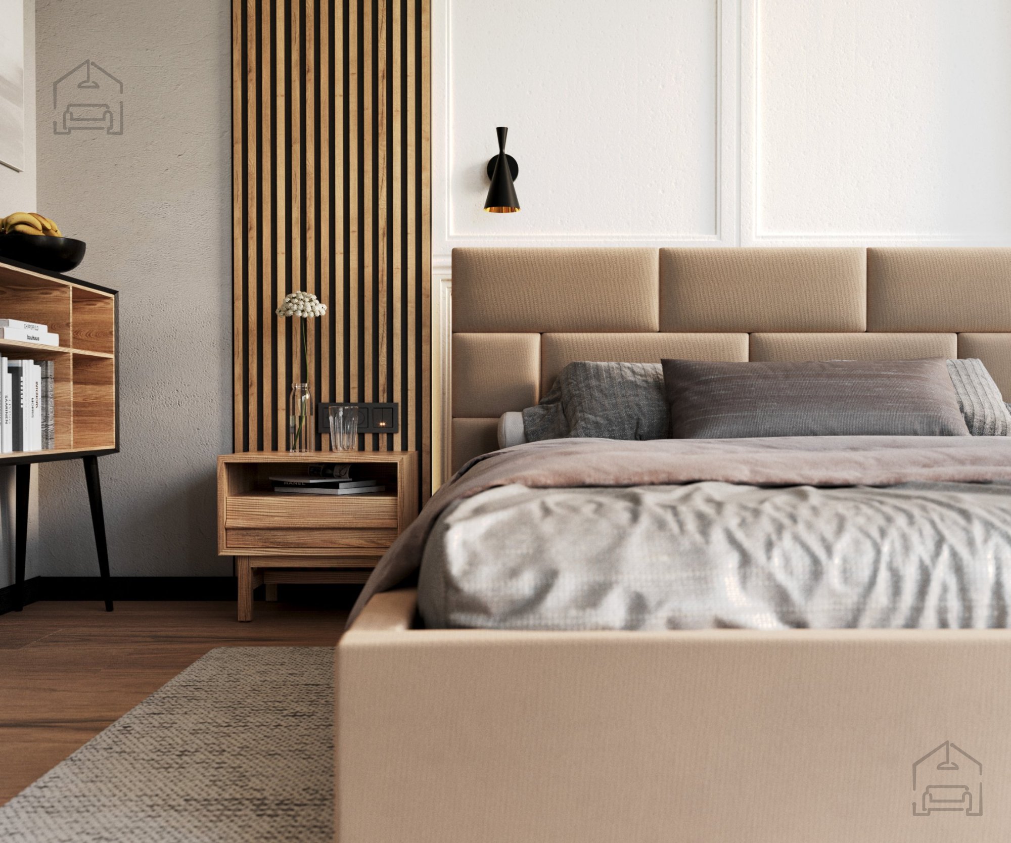 Da das Bett kein Boxspring-Typ ist, können Sie die Matratze nach Ihren persönlichen Vorlieben frei wählen – von weichen Schaummodellen bis zu festeren Taschenfederkernvarianten. Dank der stabilen Konstruktion und der hochwertigen Latten verhält sich das Bett hervorragend mit verschiedenen Arten von Liegeflächen, was bedeutet, dass Sie durch die Wahl der richtigen Matratze eine perfekte Kombination aus Komfort und Unterstützung schaffen können.
