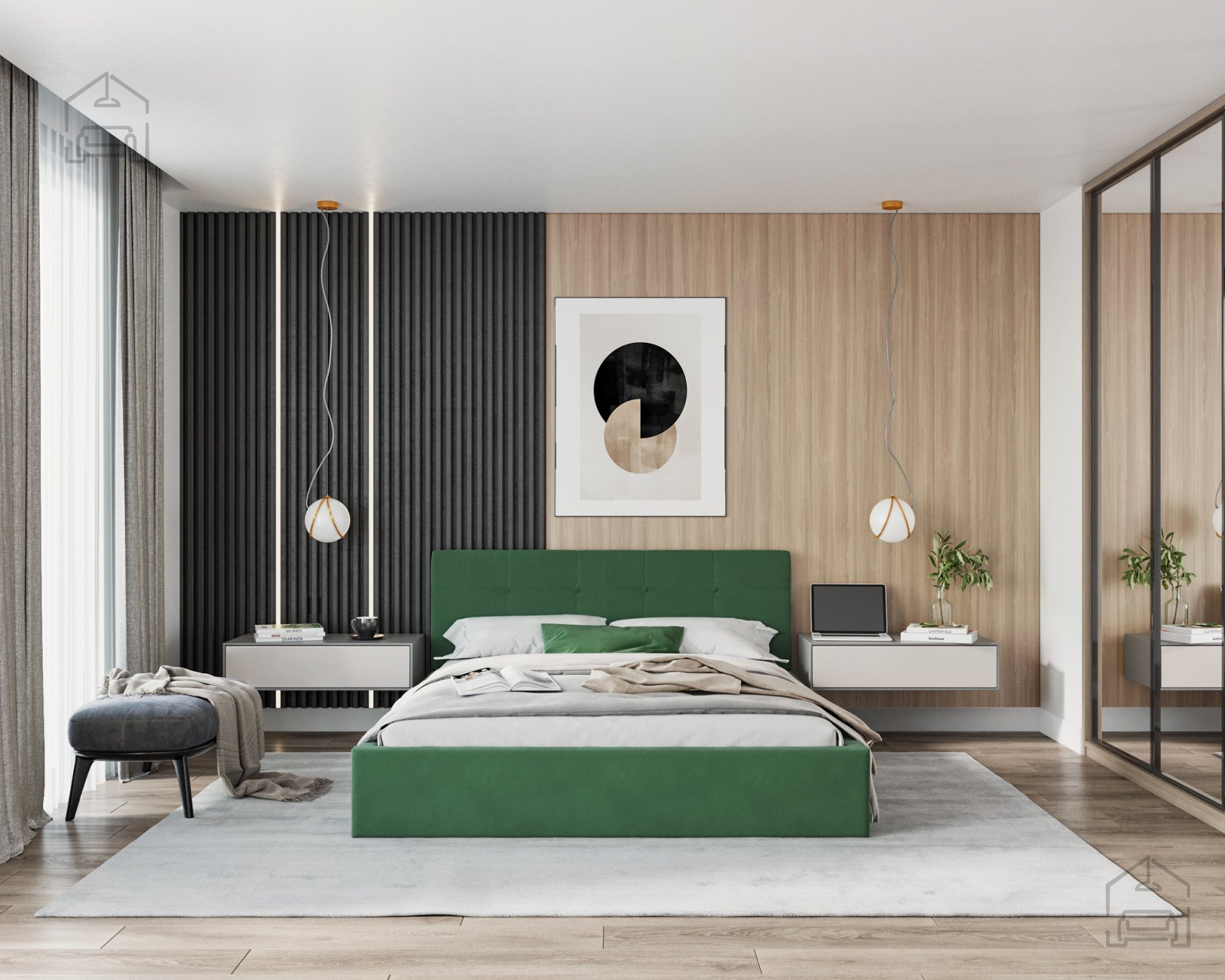Ein charakteristisches Merkmal des Bettes Rino ist sein horizontal gestepptes Kopfteil, das dem Raum einen Hauch von Eleganz und Komfort verleiht. Weiche Linien und gesteppte Details schaffen ein Gefühl von Wärme und bieten gleichzeitig angenehme Unterstützung beim Lesen oder Fernsehen im Bett. Dank der großen Auswahl an Farben und Stoffen können Sie das Bett vollständig Ihrem Geschmack und Ihrer bestehenden Einrichtung anpassen.