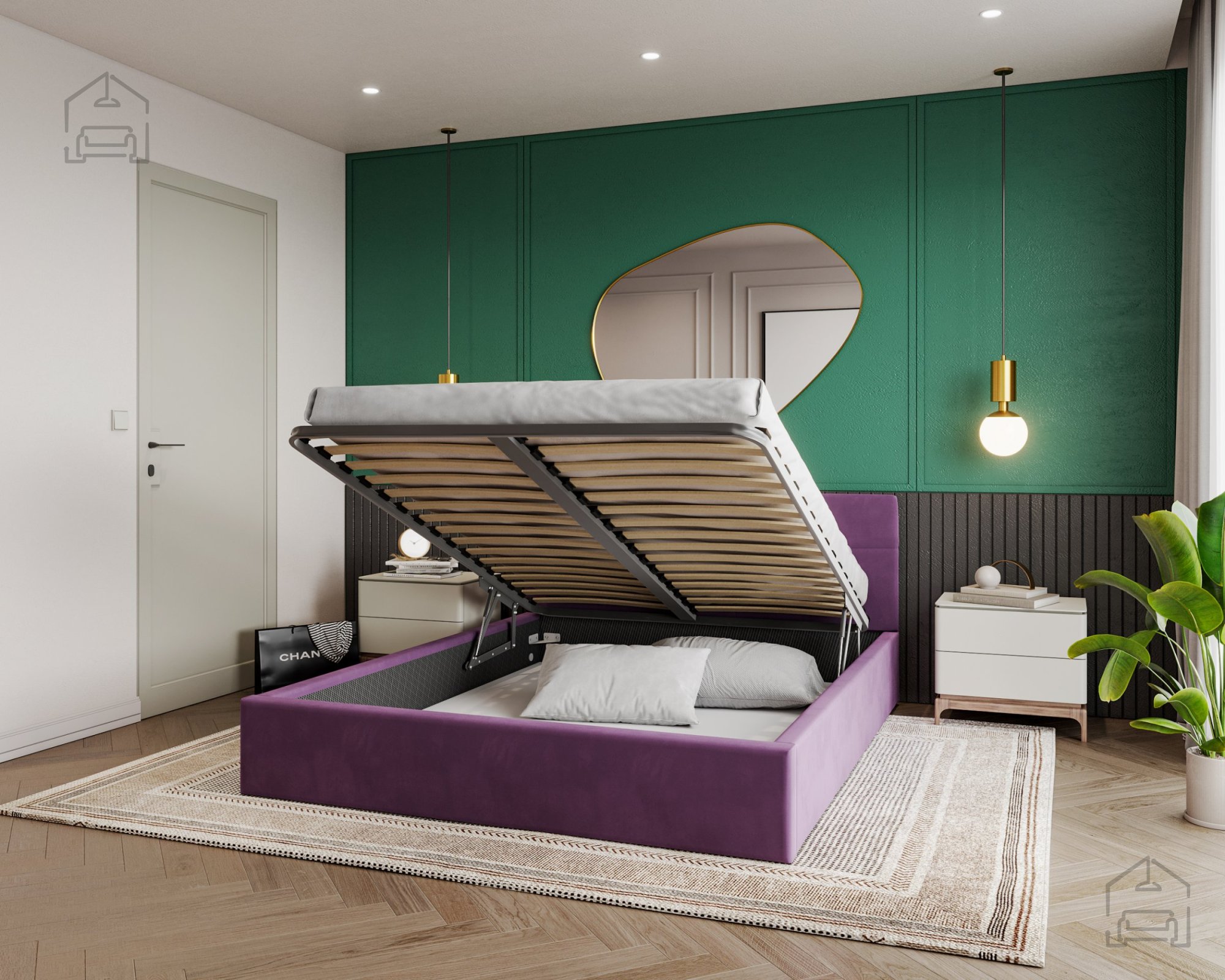 Das Bett Rino mit Hebemechanismus verfügt über einen hölzernen Hebemechanismus, der einen einfachen Zugang zum geräumigen Bettkasten ermöglicht. Für diejenigen, die zusätzliche Haltbarkeit suchen, ist auch ein Stahl-Hebemechanismus gegen Aufpreis erhältlich. Zwei pneumatische Gasdruckfedern ermöglichen ein einfaches Anheben und Absenken des Lattenrostes, was zu einer sorgenfreien und leichten Nutzung beiträgt.