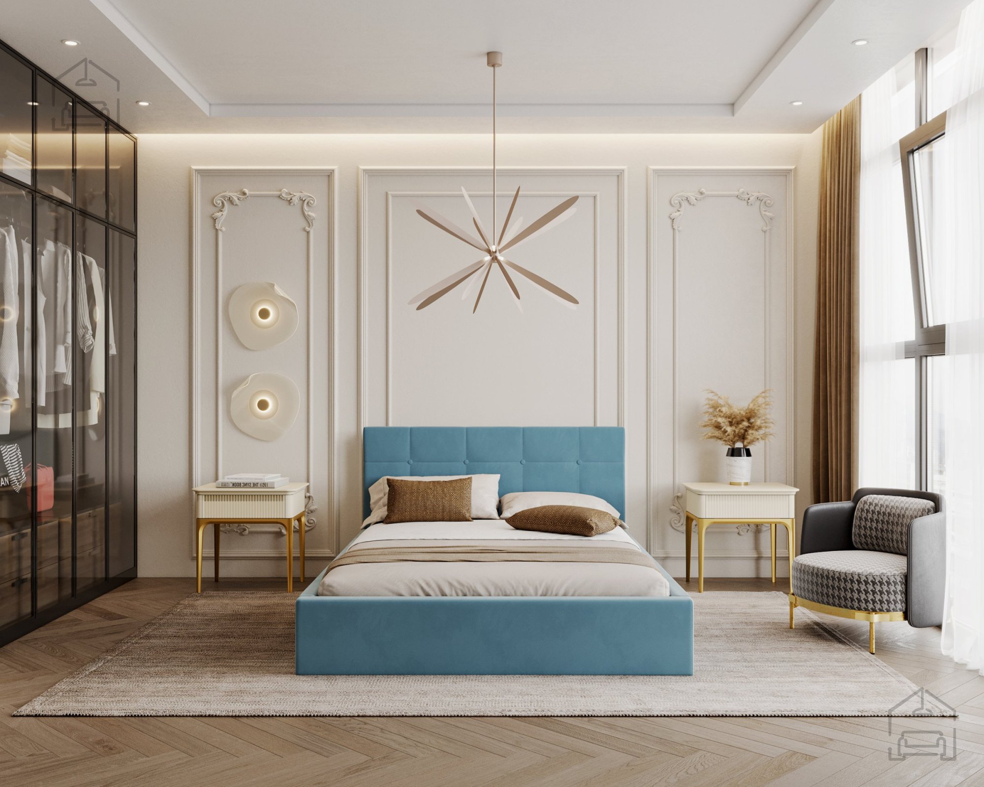 Das Kopfteil ist horizontal gesteppt, was die elegante Linie des Bettes betont und gleichzeitig eine angenehme Stütze beim Lesen oder Fernsehen bietet. Details wie weiche Linien und präzise Nähte verleihen dem Bett einen Hauch von Luxus, ohne seine funktionale Natur zu verlieren. Unabhängig von der gewählten Stofffarbe bleibt das Erscheinungsbild harmonisch und modern, da die gesteppten Muster einen subtilen visuellen Akzent schaffen.