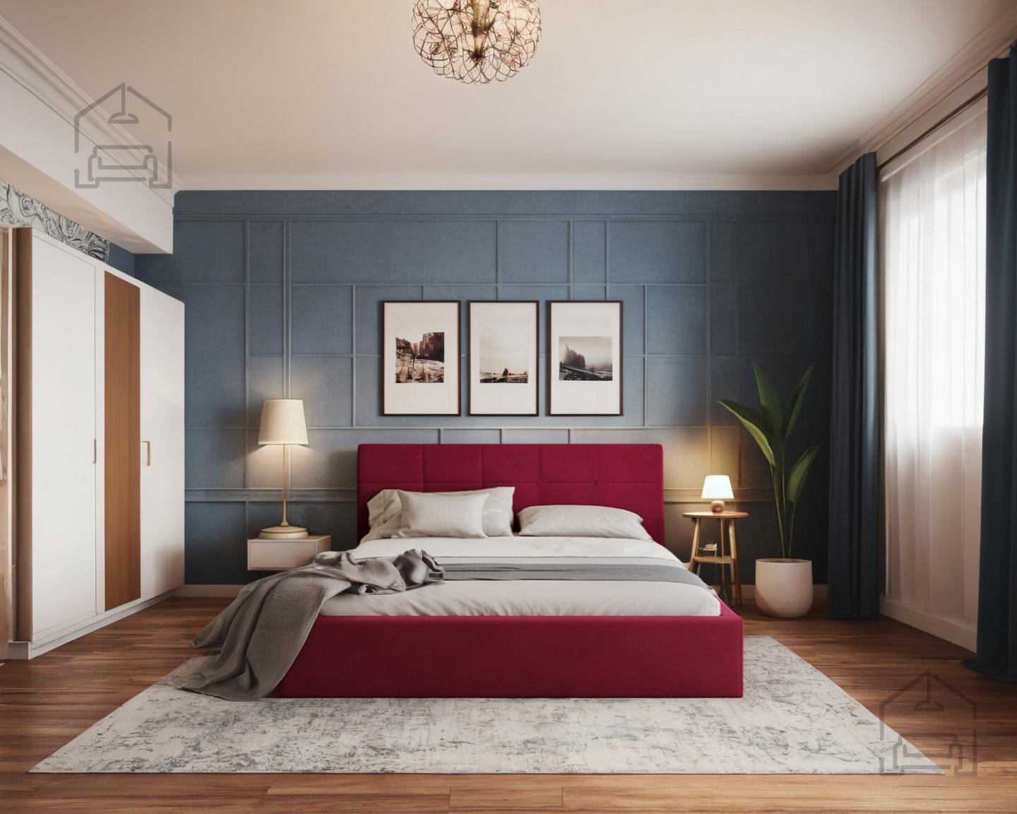Der eingebaute Hebemechanismus ermöglicht einen einfachen Zugang zu der geräumigen Bettzeugschublade, die sich unter der Liegefläche verbirgt. Standardmäßig ist ein Holzmechanismus eingebaut, gegen Aufpreis ist auch ein Stahlmechanismus erhältlich, der noch höhere Haltbarkeit und einen reibungslosen Betrieb gewährleistet. Diese Lösung ist ideal für kleinere Schlafzimmer, in denen jeder Zentimeter Platz kostbar ist, da sie das Verstauen von Decken, Kissen oder saisonaler Kleidung direkt unter dem Bett ermöglicht.