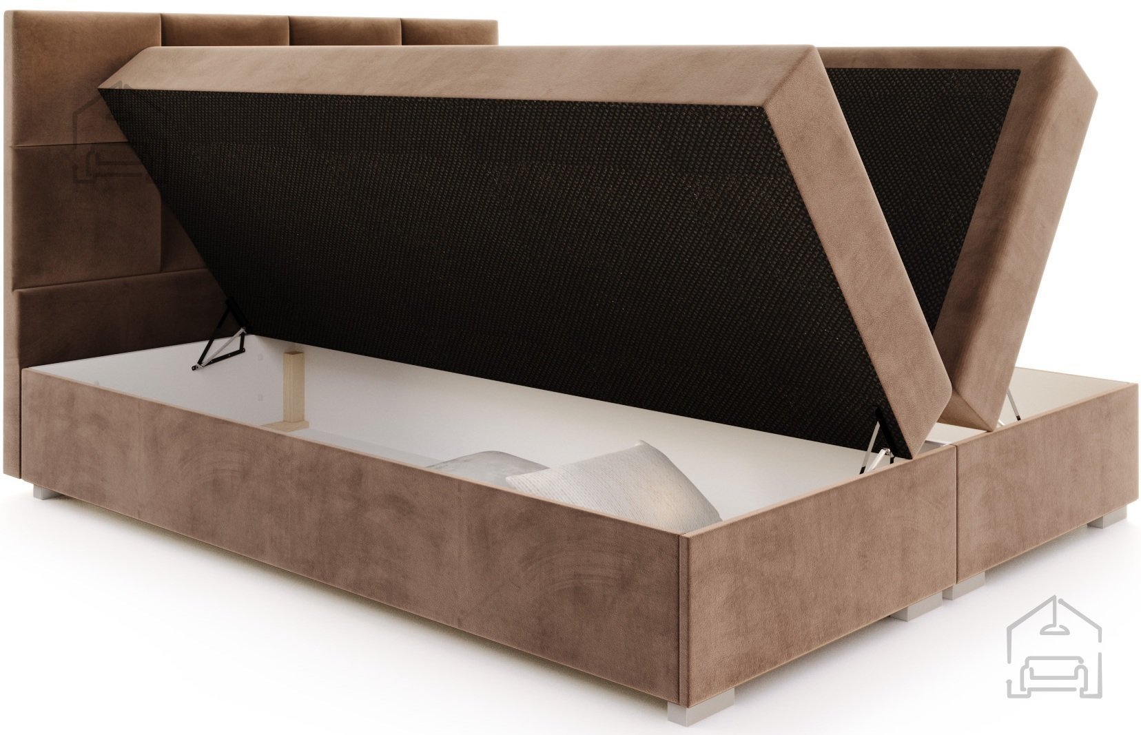 Das Bett ist als Boxspring-System aufgebaut, was eine mehrschichtige Körperunterstützung gewährleistet. Der untere Teil dient als stabile Basis, darüber befindet sich die komfortable Matratze – gemeinsam bilden sie eine ideale Balance zwischen Festigkeit und Weichheit. Diese Struktur sorgt für bessere Luftzirkulation und reduziert Feuchtigkeitsansammlungen, was die Lebensdauer der Materialien verlängert.
