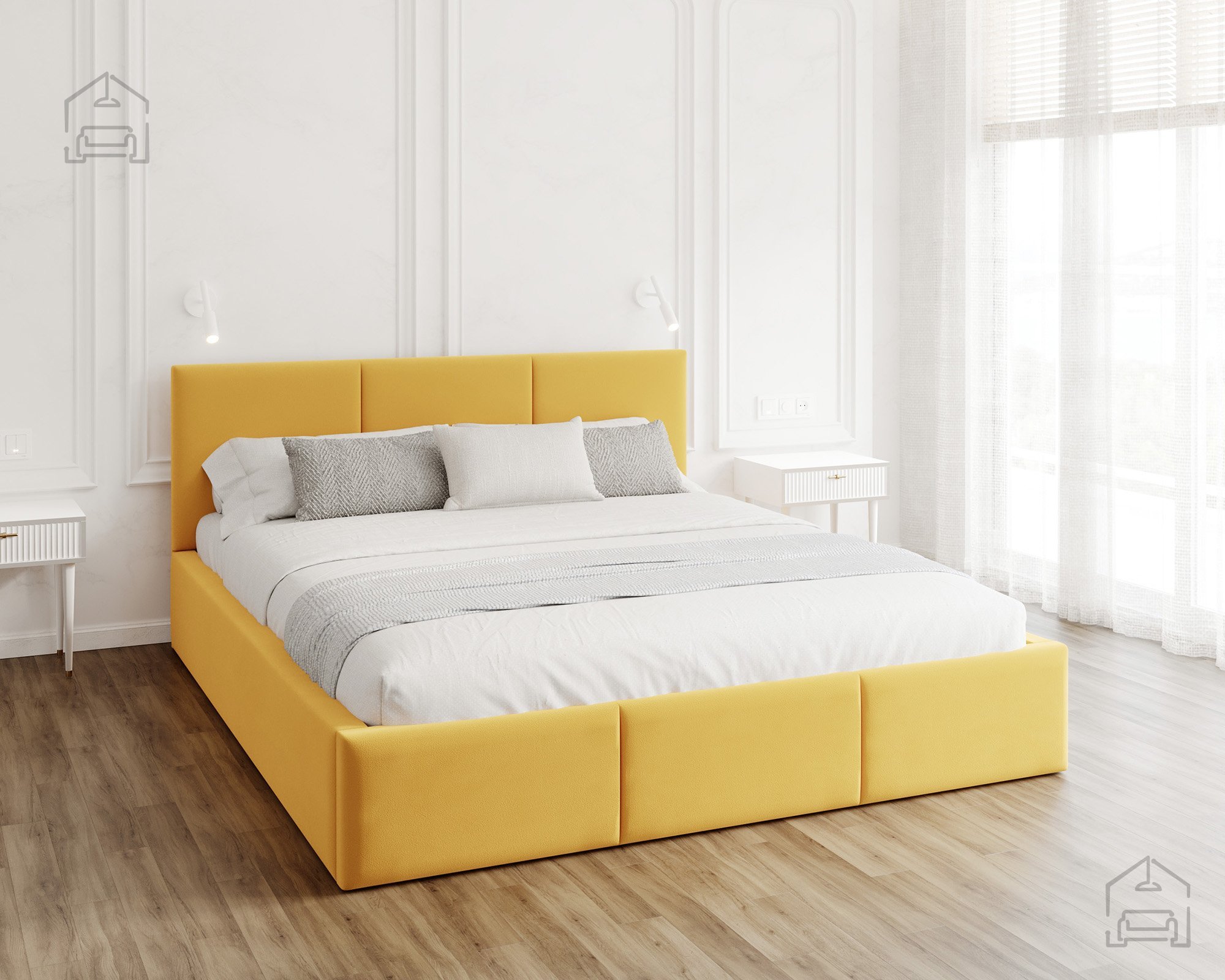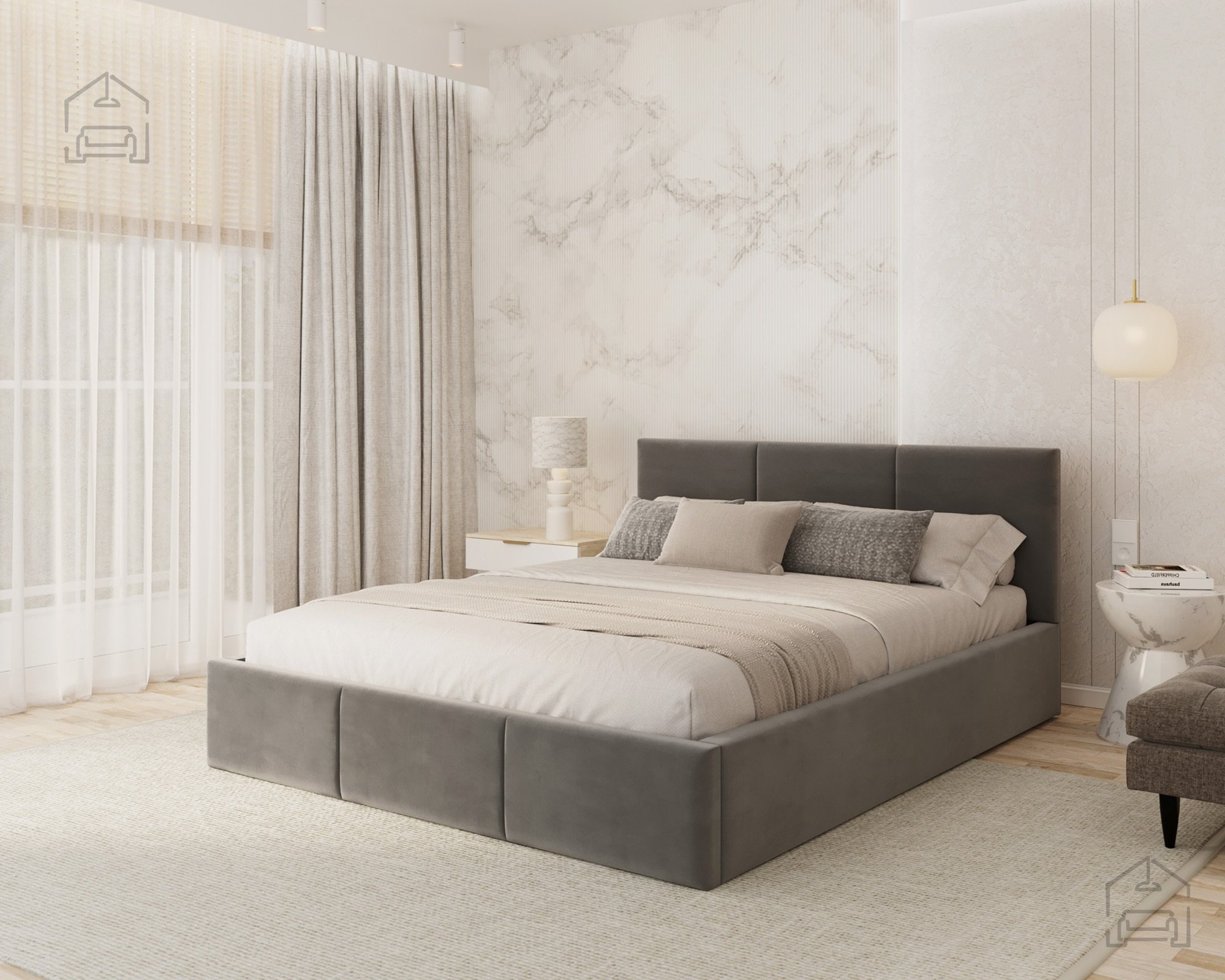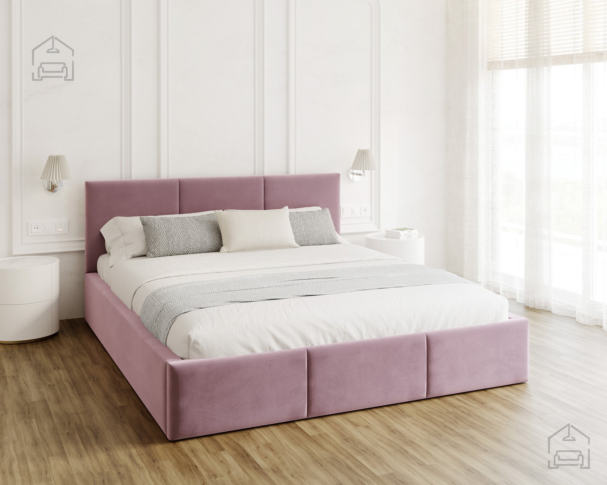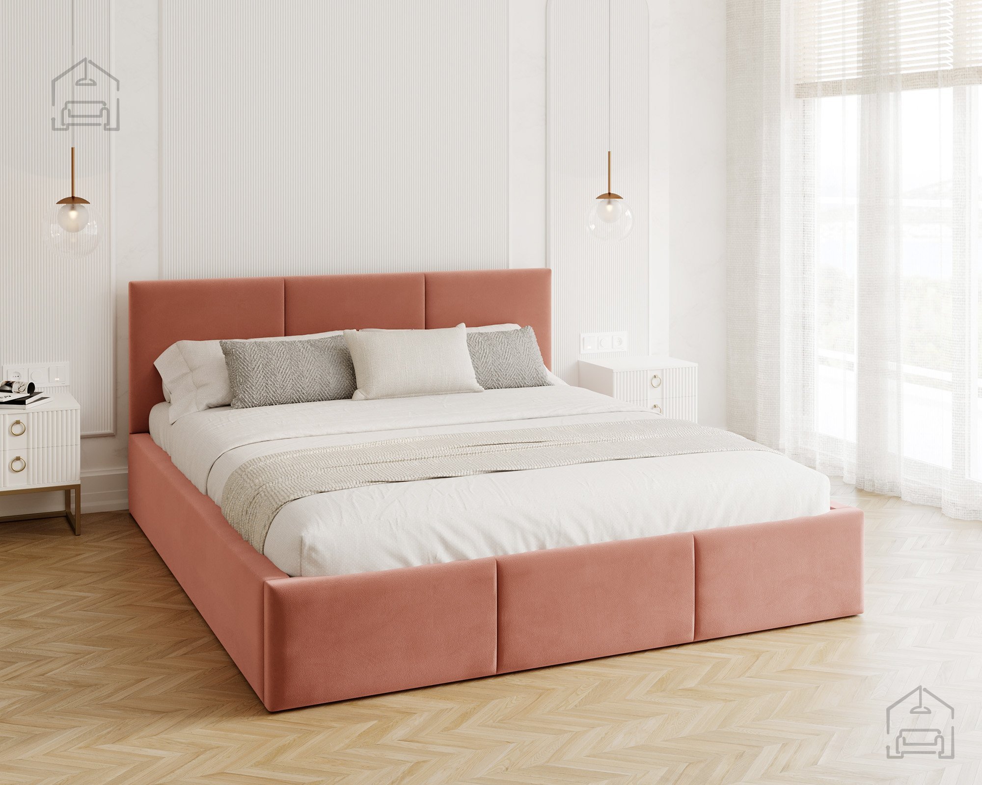 Das horizontal gesteppte Kopfteil und der vordere Teil des Bettes schaffen ein modernes, aber zugleich gemütliches Erscheinungsbild. Eine solche Form vergrößert den Raum optisch und bringt ein Gefühl von Ordnung ins Schlafzimmer. Das Bett Fresia ist in mehreren Farbvarianten und Stoffen erhältlich, sodass es sich leicht mit bestehenden Möbeln kombinieren oder in einer Kontrastfarbe als Akzent wählen lässt. Das weich gepolsterte Kopfteil bietet bequemen Halt beim Lesen oder Fernsehen und dient gleichzeitig als ästhetischer Blickfang im Raum.