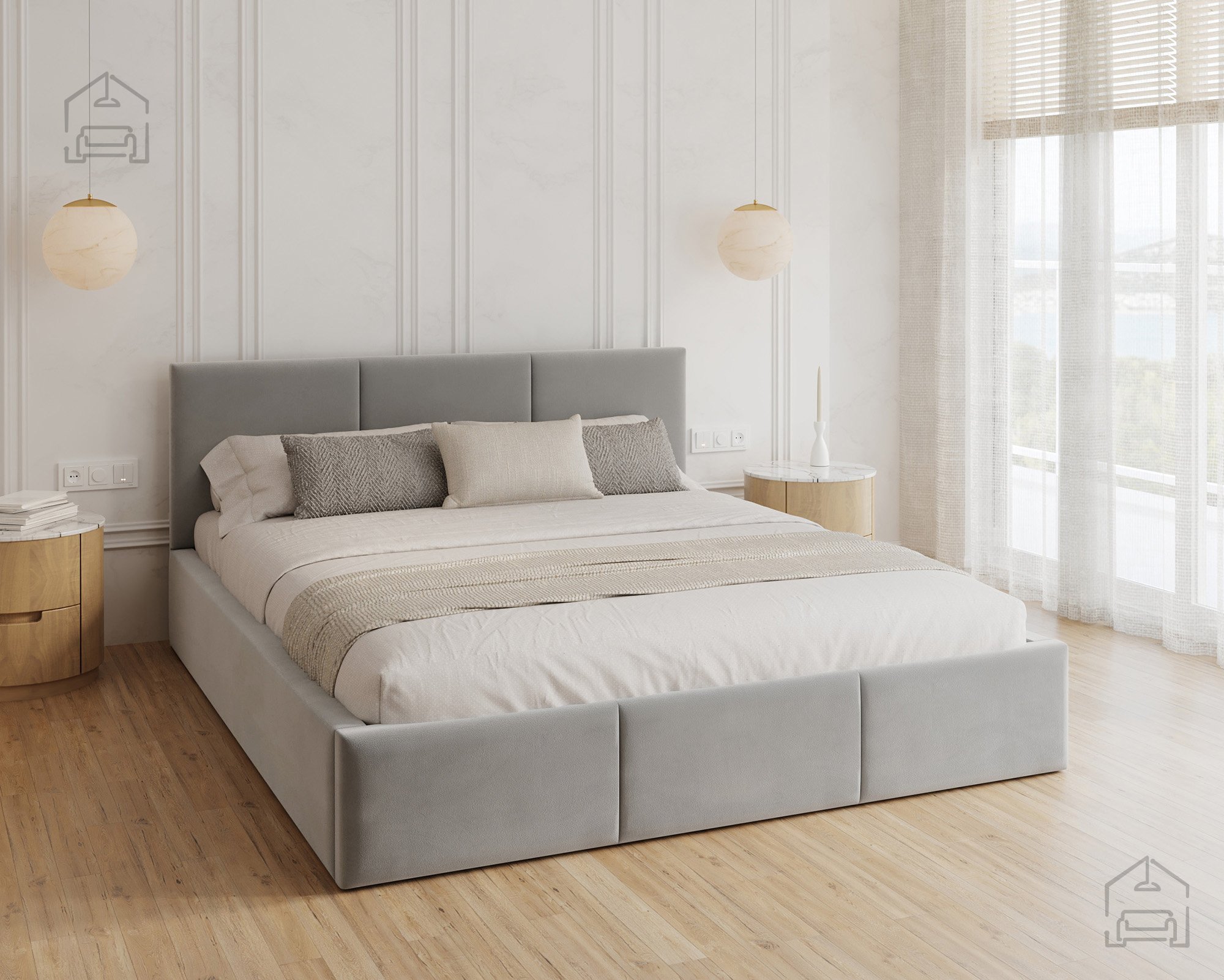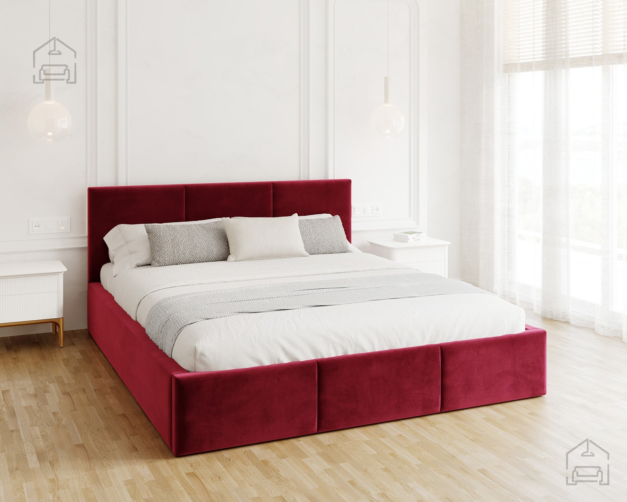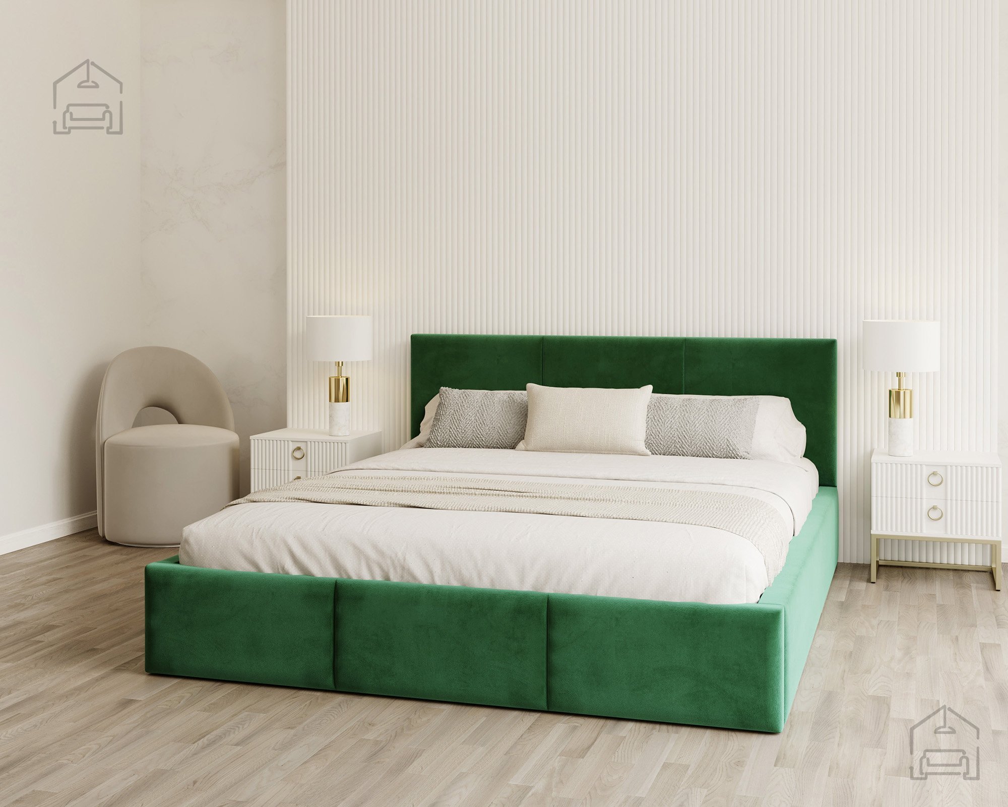 Das horizontal gesteppte Kopfteil und der vordere Teil des Bettes schaffen ein modernes, aber zugleich gemütliches Erscheinungsbild. Eine solche Form vergrößert den Raum optisch und bringt ein Gefühl von Ordnung ins Schlafzimmer. Das Bett Fresia ist in mehreren Farbvarianten und Stoffen erhältlich, sodass es sich leicht mit bestehenden Möbeln kombinieren oder in einer Kontrastfarbe als Akzent wählen lässt. Das weich gepolsterte Kopfteil bietet bequemen Halt beim Lesen oder Fernsehen und dient gleichzeitig als ästhetischer Blickfang im Raum.