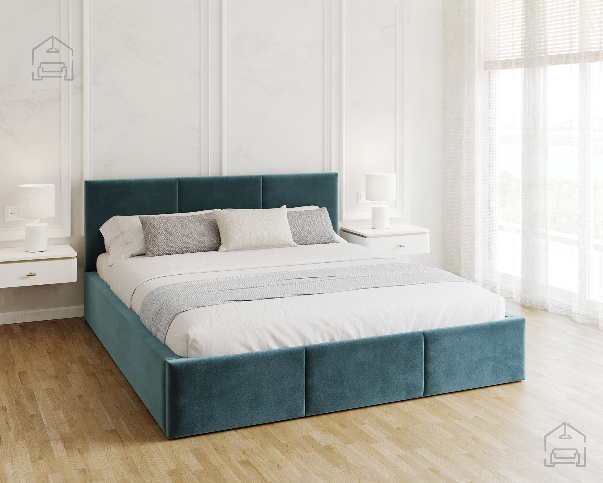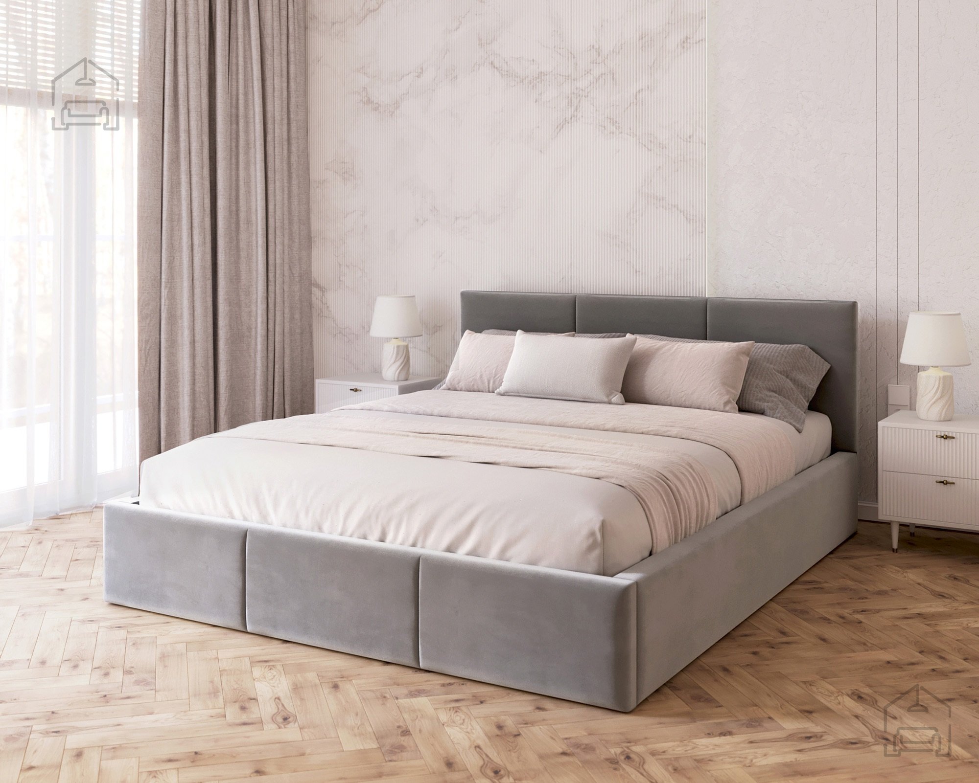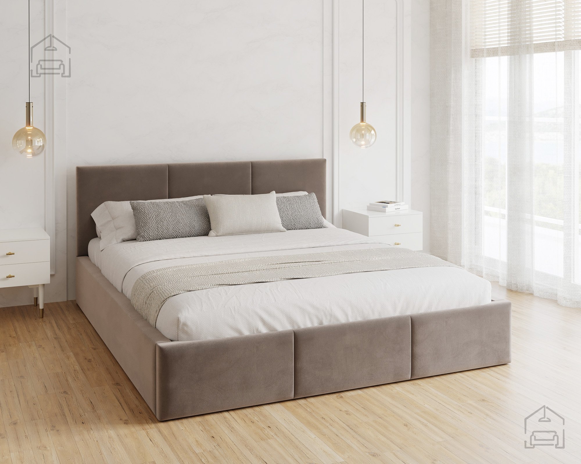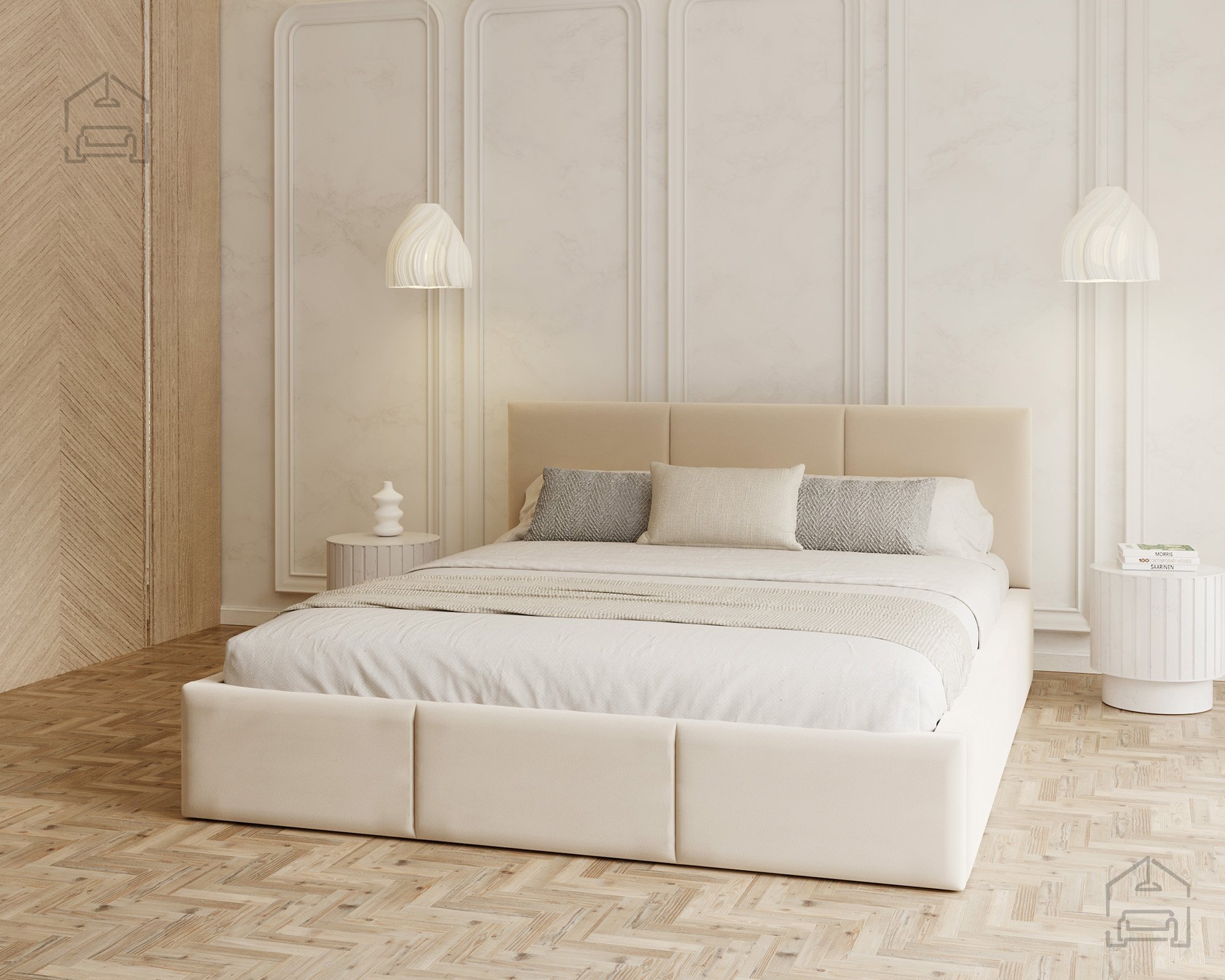 Das horizontal gesteppte Kopfteil und der vordere Teil des Bettes schaffen ein modernes, aber zugleich gemütliches Erscheinungsbild. Eine solche Form vergrößert den Raum optisch und bringt ein Gefühl von Ordnung ins Schlafzimmer. Das Bett Fresia ist in mehreren Farbvarianten und Stoffen erhältlich, sodass es sich leicht mit bestehenden Möbeln kombinieren oder in einer Kontrastfarbe als Akzent wählen lässt. Das weich gepolsterte Kopfteil bietet bequemen Halt beim Lesen oder Fernsehen und dient gleichzeitig als ästhetischer Blickfang im Raum.