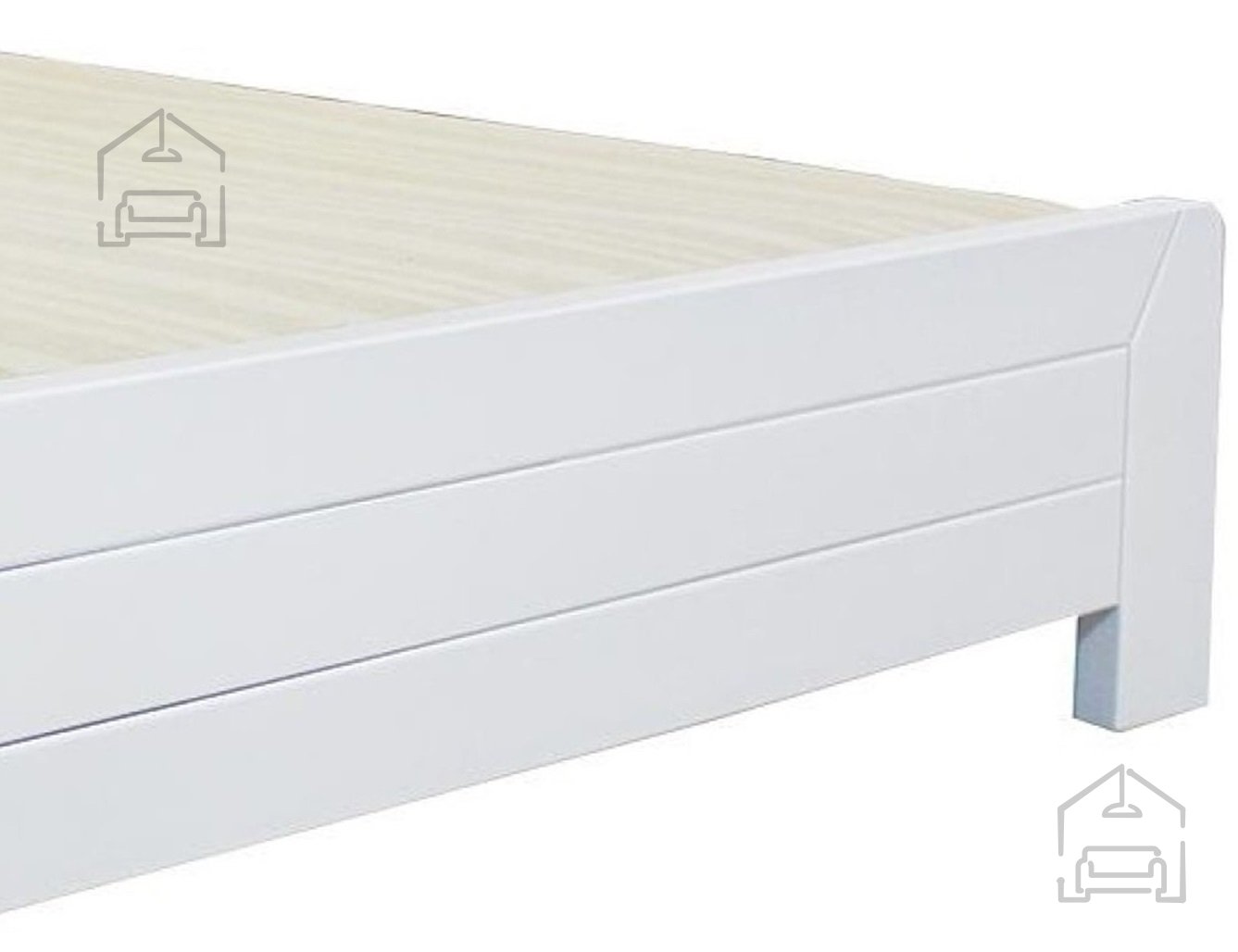 • Breites Bett, gefertigt im modernen Stil, erhältlich in neutralem Weiß.