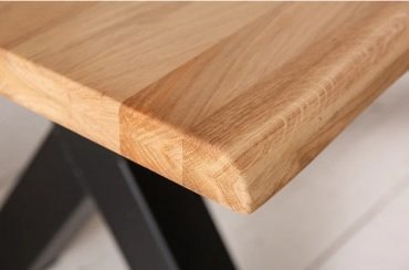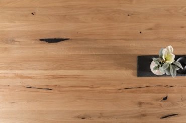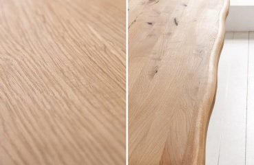 Die Platten bestehen aus massivem, geöltem Eichenholz in rustikaler Ausführung.