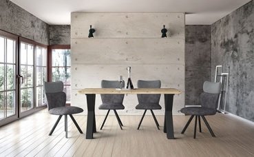 Modernes System von Esstischen und Bänken, das Ihnen ermöglicht, den Tisch ganz nach Ihrem Geschmack selbst zusammenzustellen.