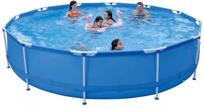 Der Rahmenpool basiert auf einer Stahlkonstruktion, die Stabilität und eine lange Lebensdauer gewährleistet. Die Metallelemente sind so gestaltet, dass sie einfach ohne zusätzliches Werkzeug zusammengebaut werden können, was bedeutet, dass Sie den Pool in wenigen Stunden aufstellen können. Ein rund um den äußeren Rand angebrachter Verstärkungsgurt stärkt die Konstruktion zusätzlich und verhindert Verformungen während des Gebrauchs. Die Innenwand des Pools besteht aus einem mehrschichtigen Material, das gegen mechanische Beschädigungen und UV-Strahlen beständig ist, wodurch das Wasser während der gesamten Saison klar und angenehm zum Baden bleibt.