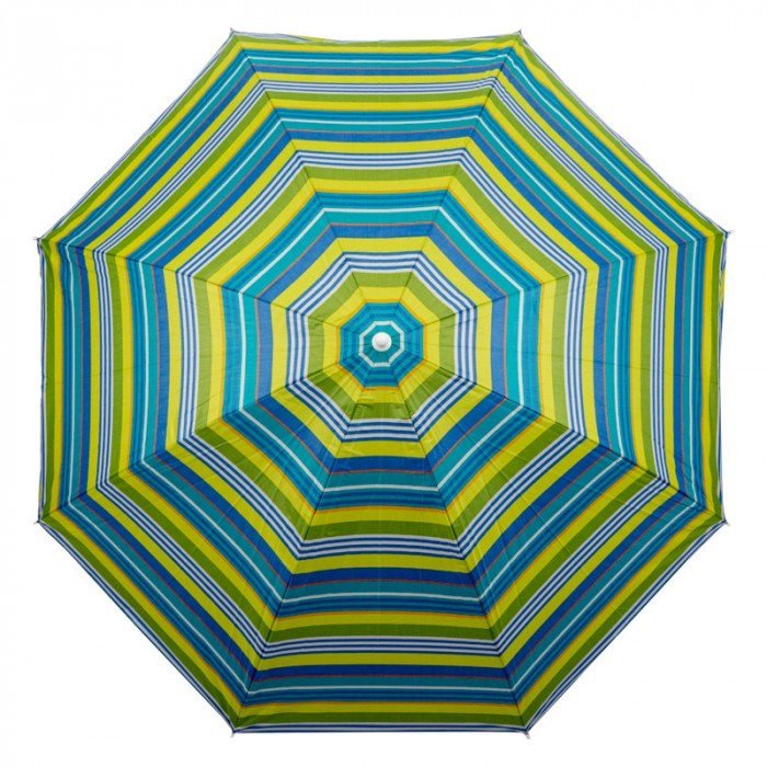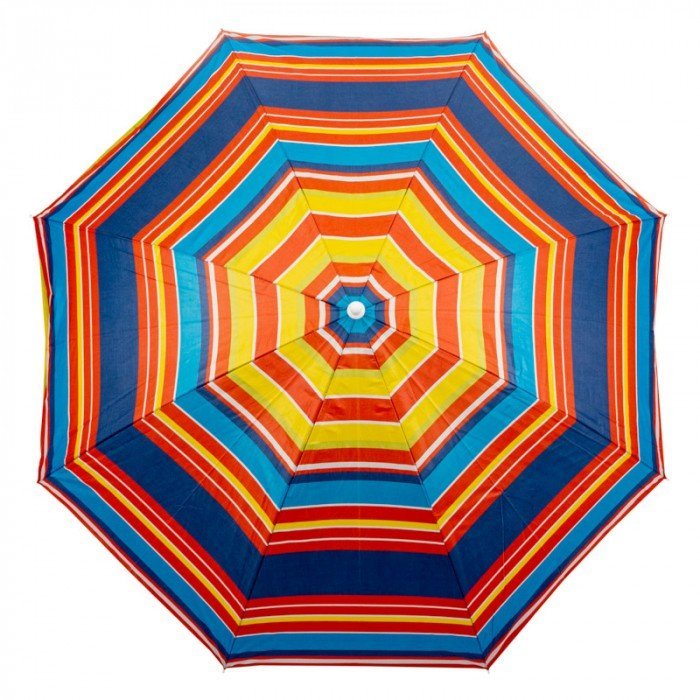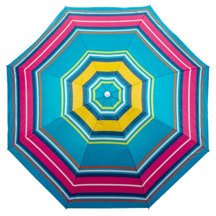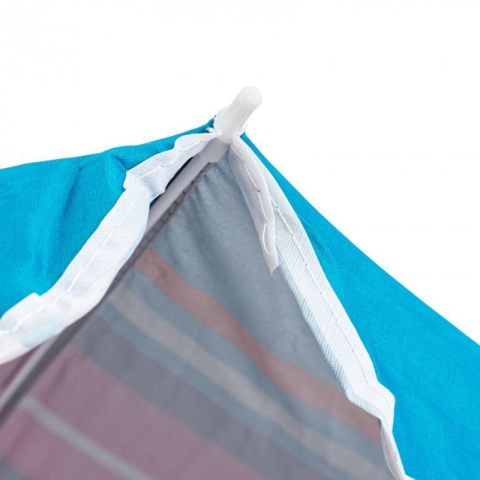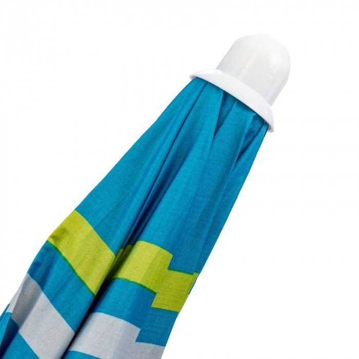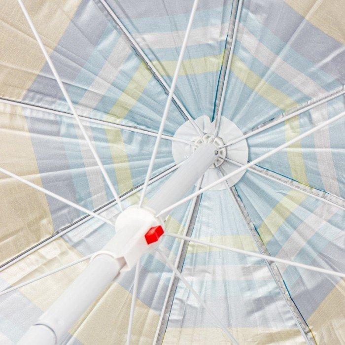 Die Basis des Sonnenschirms besteht aus hochwertigem Stahl, der der Konstruktion die notwendige Festigkeit verleiht und gleichzeitig ein relativ geringes Gewicht beibehält, was das Tragen und Aufstellen erleichtert. Der Stahlrahmen ist gegen Verformungen beständig, was Stabilität auch bei mäßigem Wind gewährleistet. Das Nylondach ist leicht, trocknet schnell und ist einfach zu reinigen – die ideale Wahl für den Einsatz in der Nähe von Wasser oder im Freien, wo Feuchtigkeit und Sand auftreten können.
