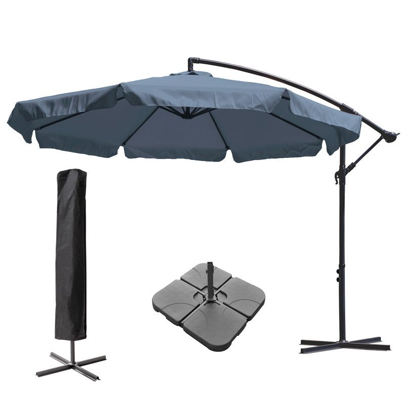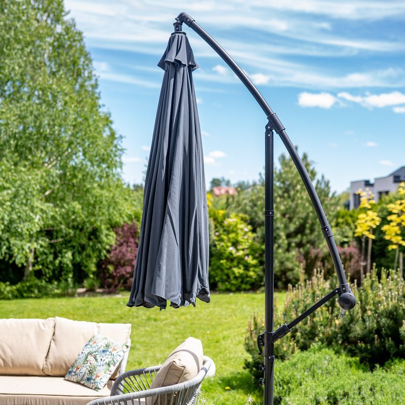 Ein klassischer Gartenschirm mit einem Durchmesser von 3 Metern, ideal für Garten oder Terrasse. Die seitliche Konstruktion in Kombination mit der großen Schirmfläche sorgt für angenehmen Schatten auf einer größeren Fläche. Das Stahlgestell ist robust und sorgt für eine lange Lebensdauer. Der Schirmbezug aus Polyester ist bestens für den Außenbereich geeignet. Dank der Handkurbel lässt sich der Schirm bequem öffnen und schließen. Für Stabilität sorgen acht Streben im Schirmdach sowie der solide Kreuzfuß. Der Schirm ist einfach zu bedienen und perfekt für den täglichen Gebrauch.