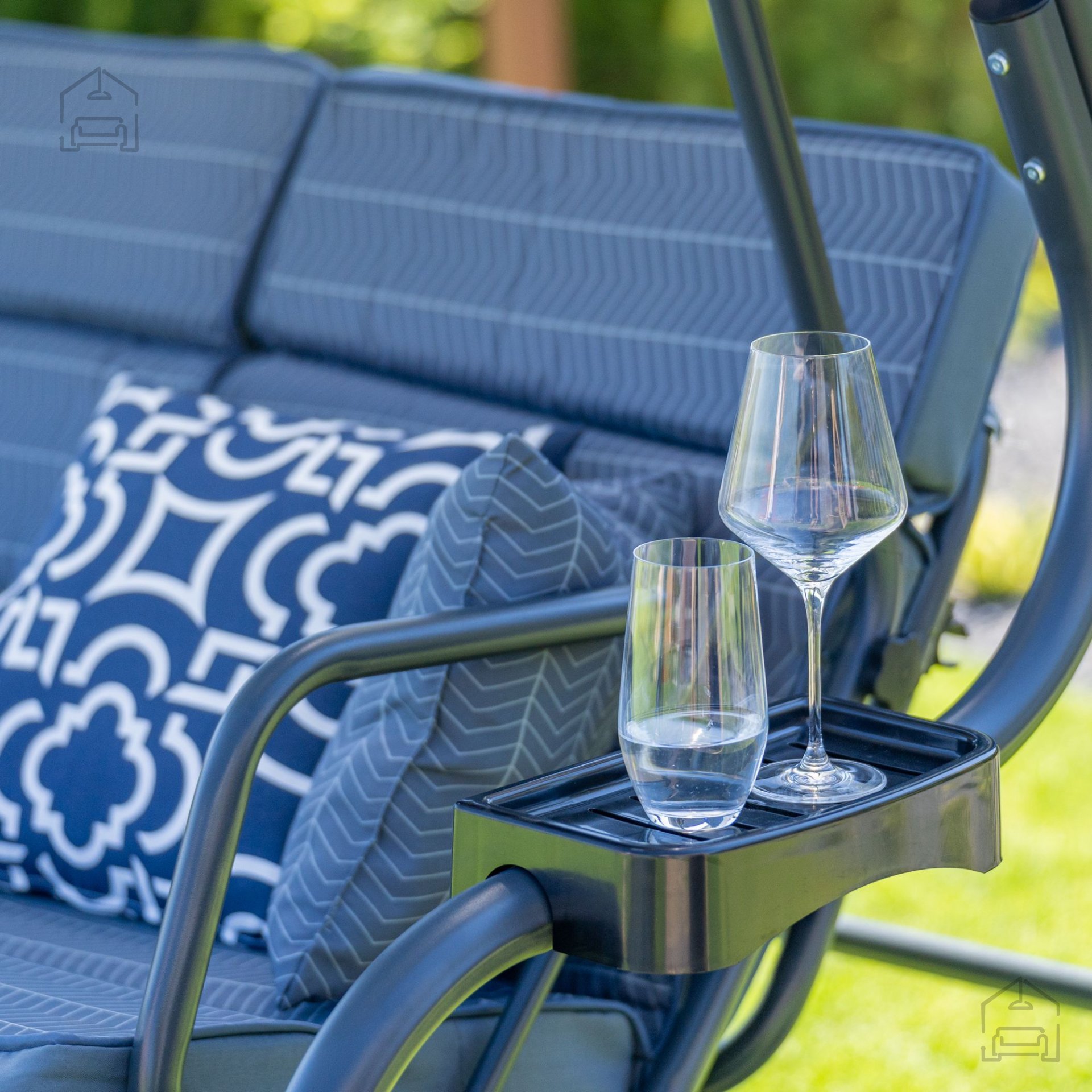 Diese 3-Sitzer-Schaukel ist ein elegantes und bequemes Möbelstück für Ihren Garten. Das Gestell besteht aus pulverbeschichtetem Stahl, was für langlebige Qualität sorgt, ohne dass häufige Pflege nötig ist. Das Material ist besonders korrosionsbeständig, wodurch die Schaukel viele Jahre schön bleibt. Das verstellbare Sonnendach schützt zuverlässig vor intensiver Sonne oder leichtem Regen, während die weiche Sitzfläche und die Armlehnen zusätzlichen Komfort bieten. Im Set sind zwei Zierkissen sowie praktische Ablagen enthalten. Außerdem verfügt die Schaukel über ein Moskitonetz, das effektiv vor Insekten schützt.