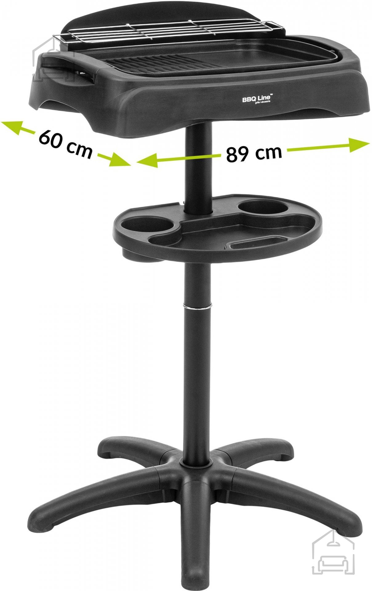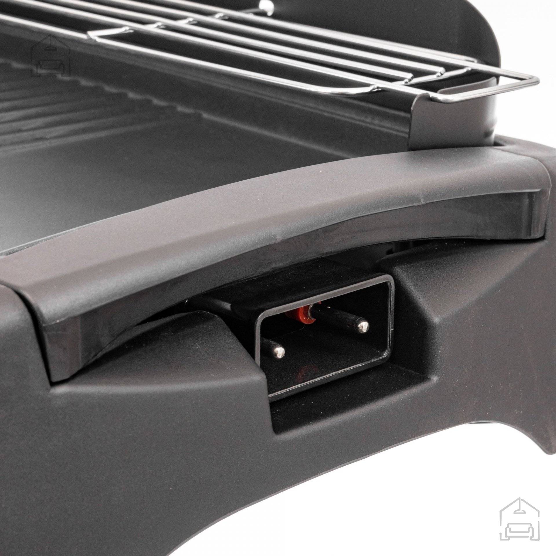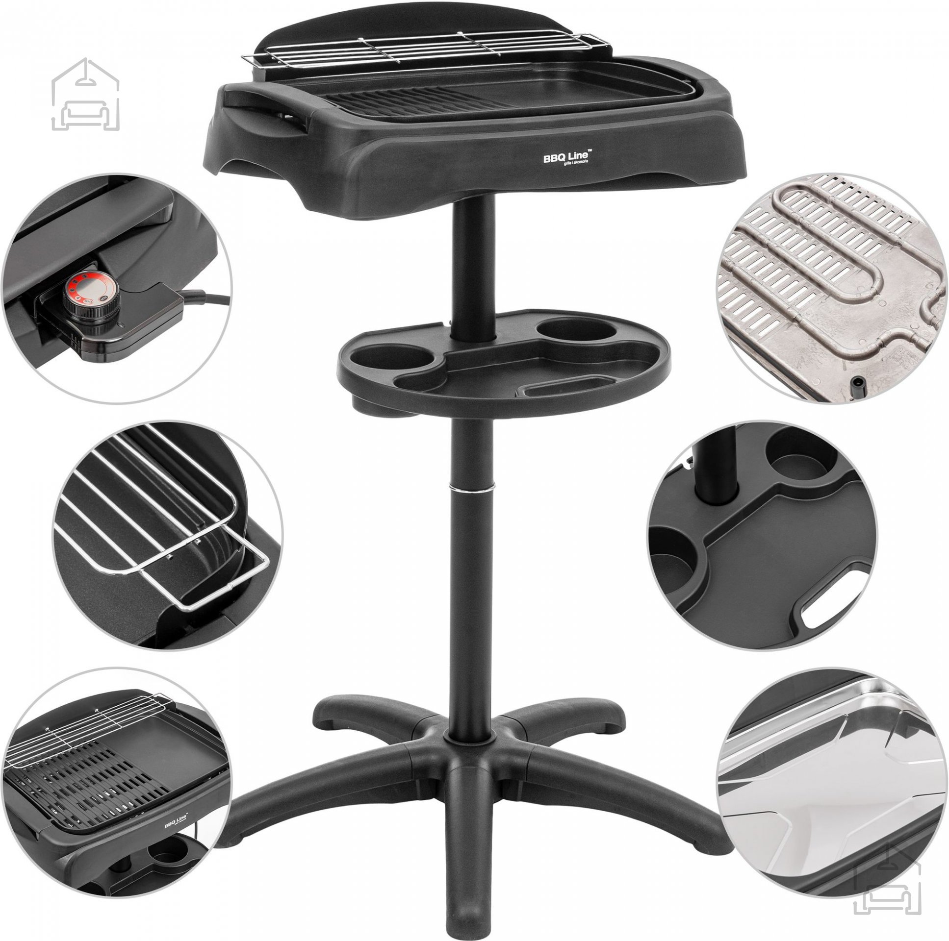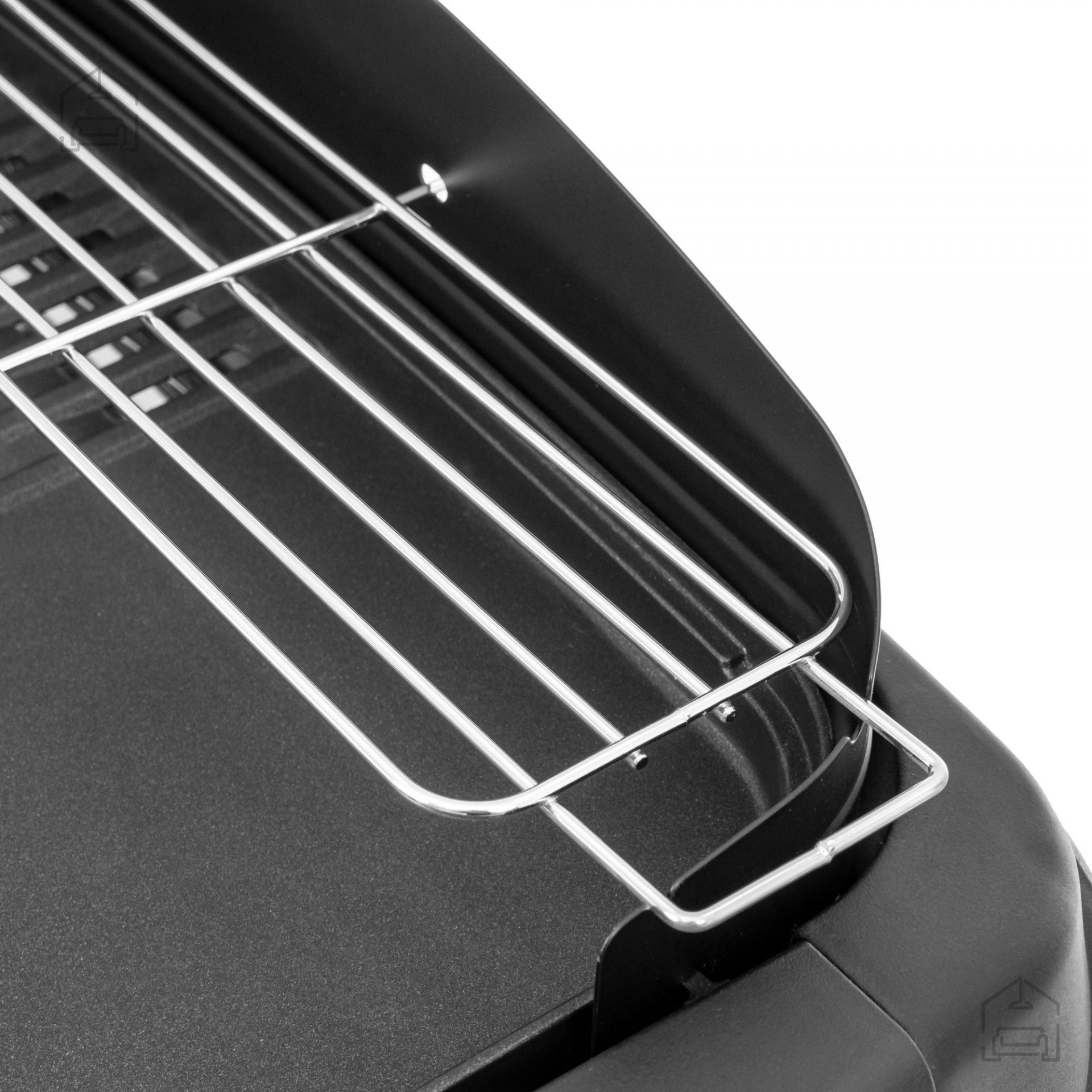 Der Grill ist mit einem Kreuzständer ausgestattet, der die gesamte Konstruktion stabil hält. Ein zusätzliches Regal für Besteck sorgt für Komfort beim Grillen, da Sie dort die notwendigen Utensilien ablegen können. Die Metallkonstruktion des Grills ist robust genug, um das Gerät über mehrere Saisonen zuverlässig zu nutzen. Der praktische Elektrogrill kann im Garten und auf dem Grundstück, auf der Terrasse sowie auch zu Hause verwendet werden. Es ist ein Ganzjahresgerät.