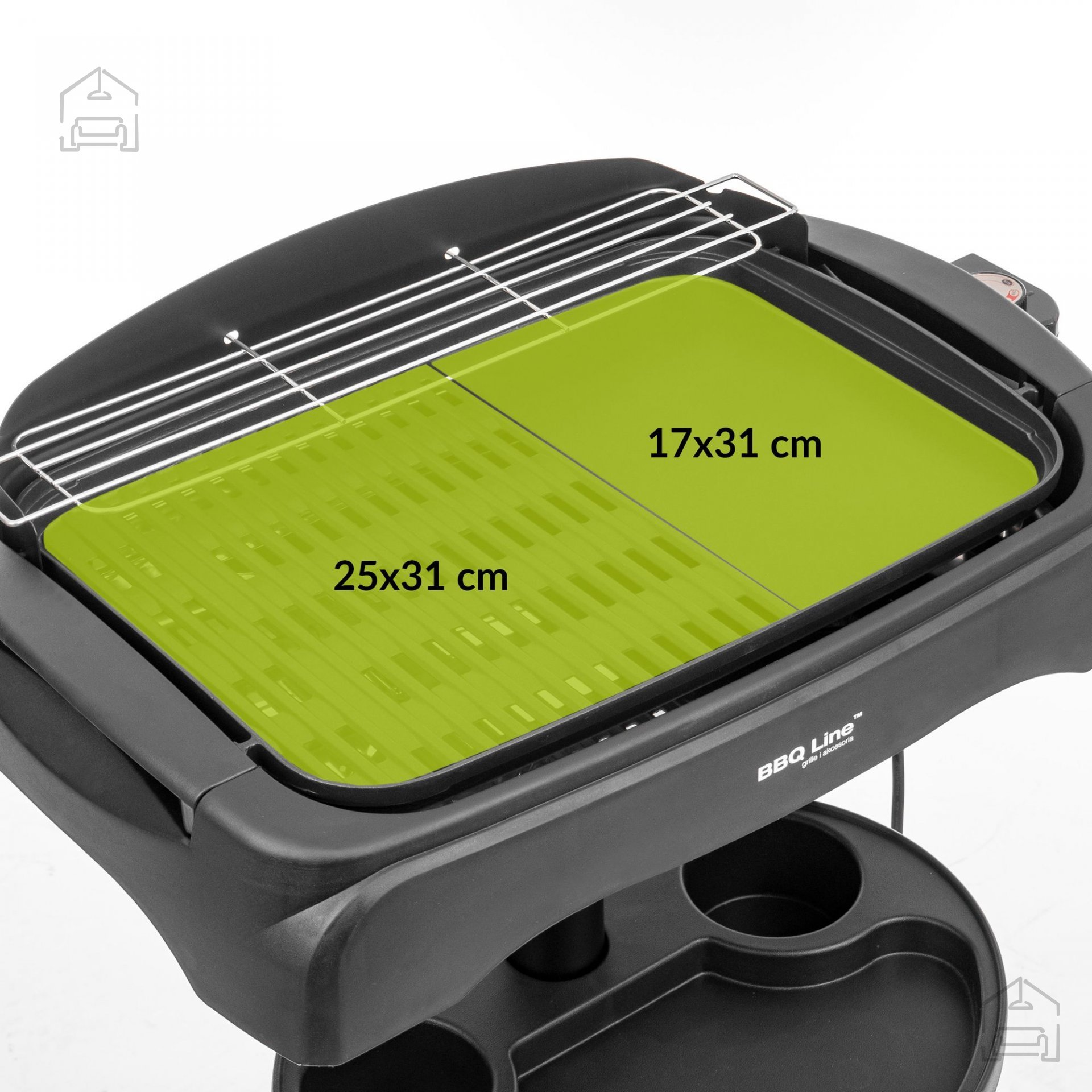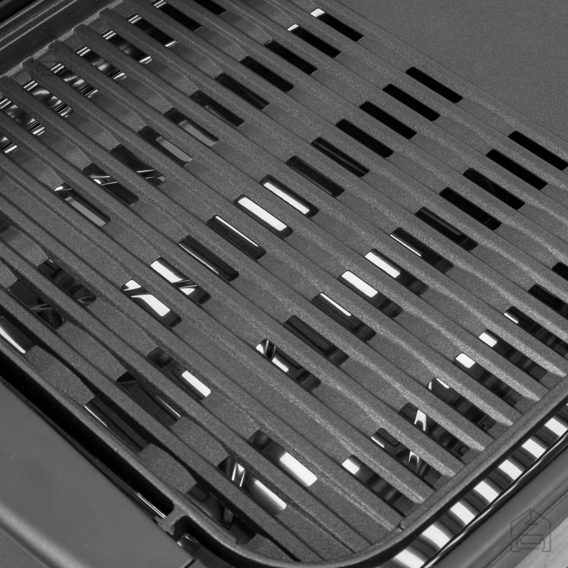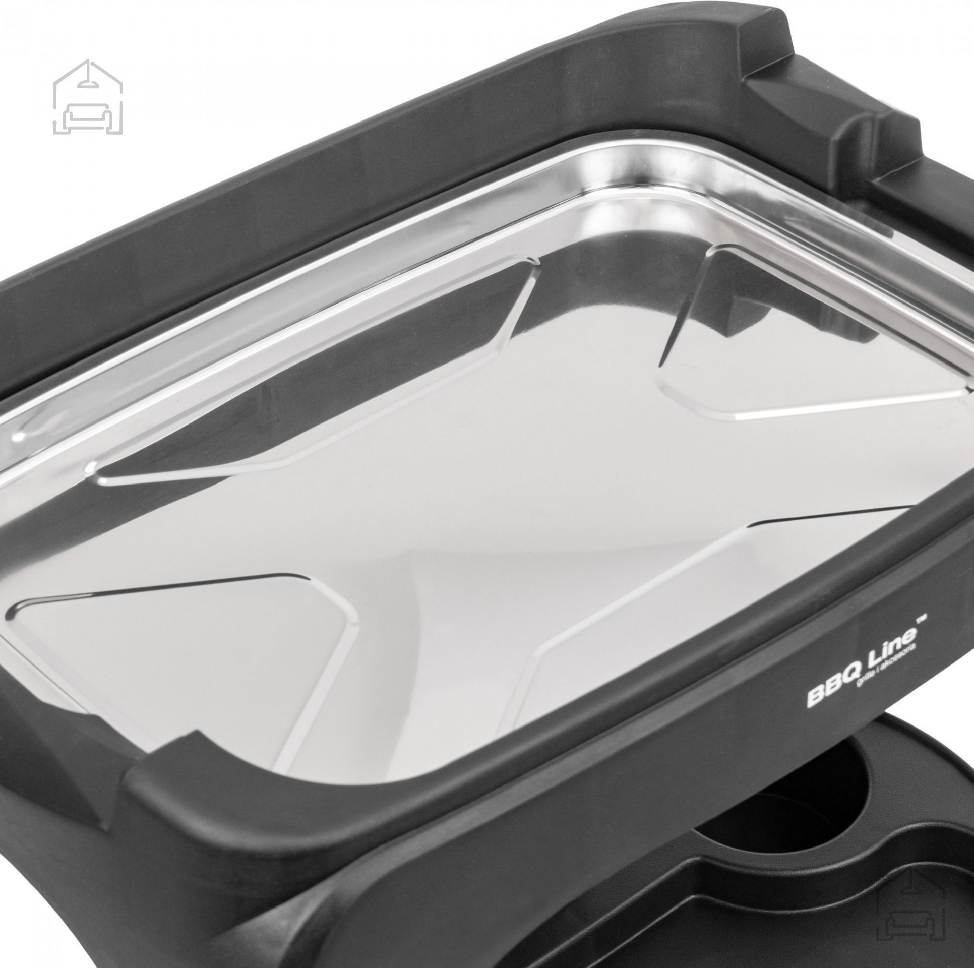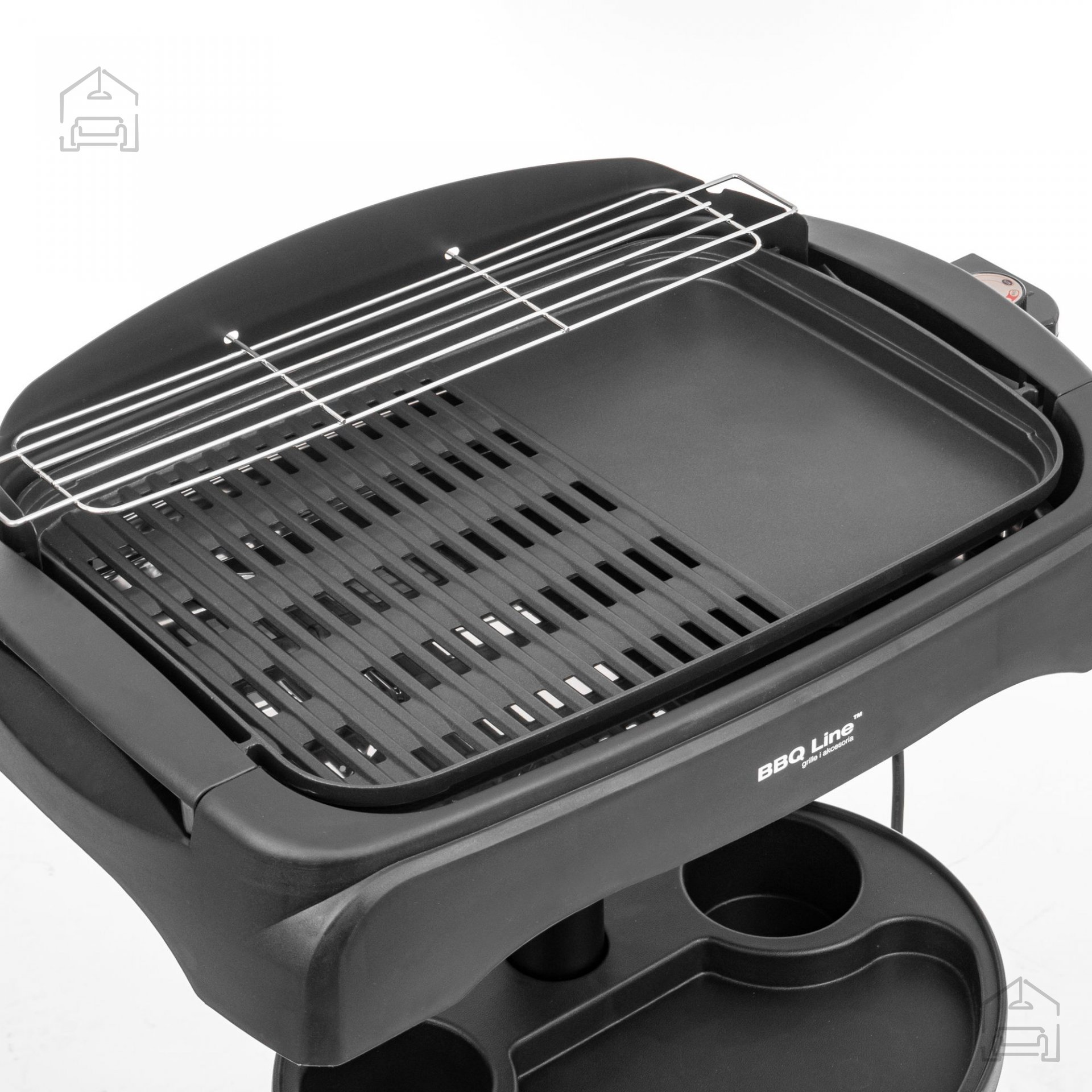 Der Grill ist mit einem Kreuzständer ausgestattet, der die gesamte Konstruktion stabil hält. Ein zusätzliches Regal für Besteck sorgt für Komfort beim Grillen, da Sie dort die notwendigen Utensilien ablegen können. Die Metallkonstruktion des Grills ist robust genug, um das Gerät über mehrere Saisonen zuverlässig zu nutzen. Der praktische Elektrogrill kann im Garten und auf dem Grundstück, auf der Terrasse sowie auch zu Hause verwendet werden. Es ist ein Ganzjahresgerät.