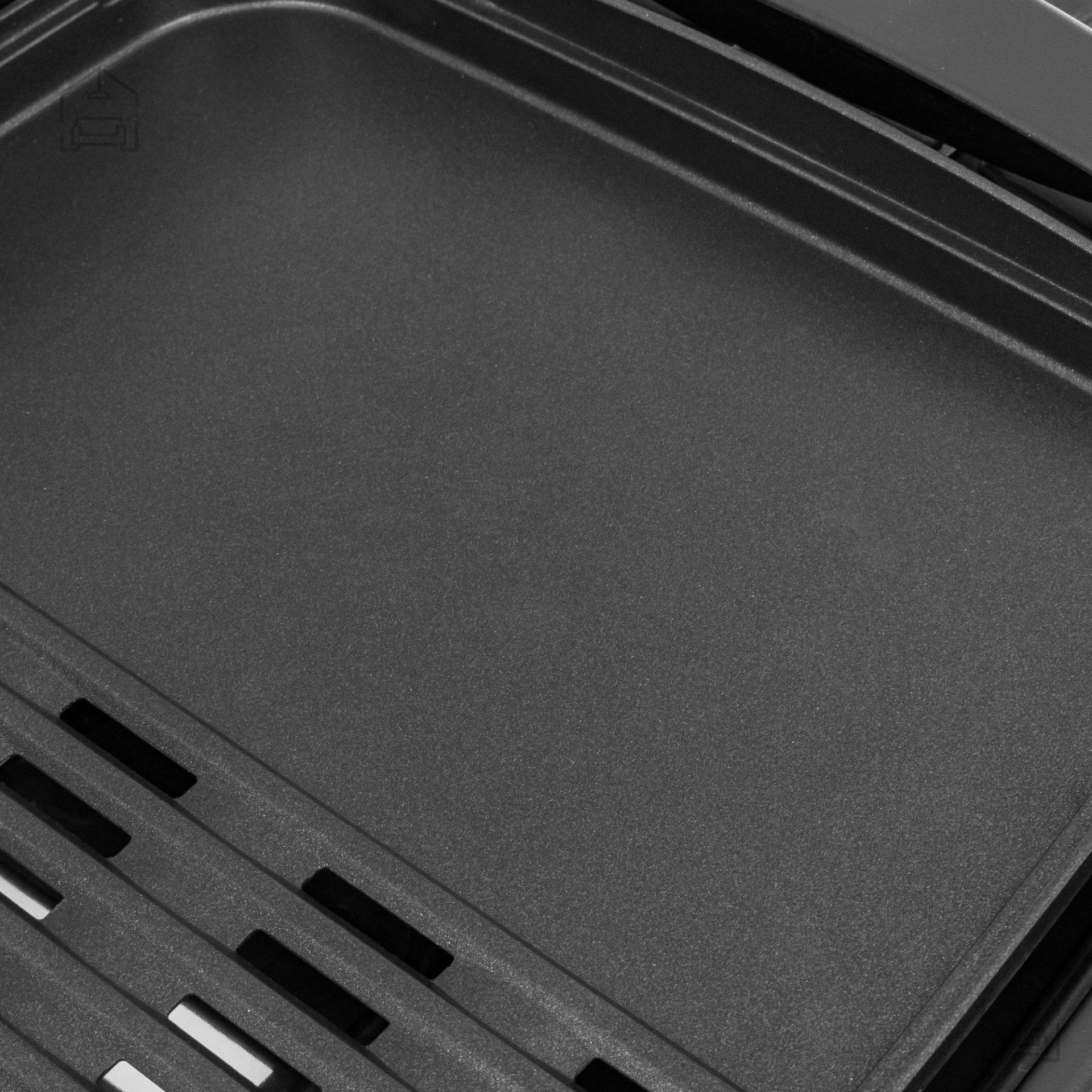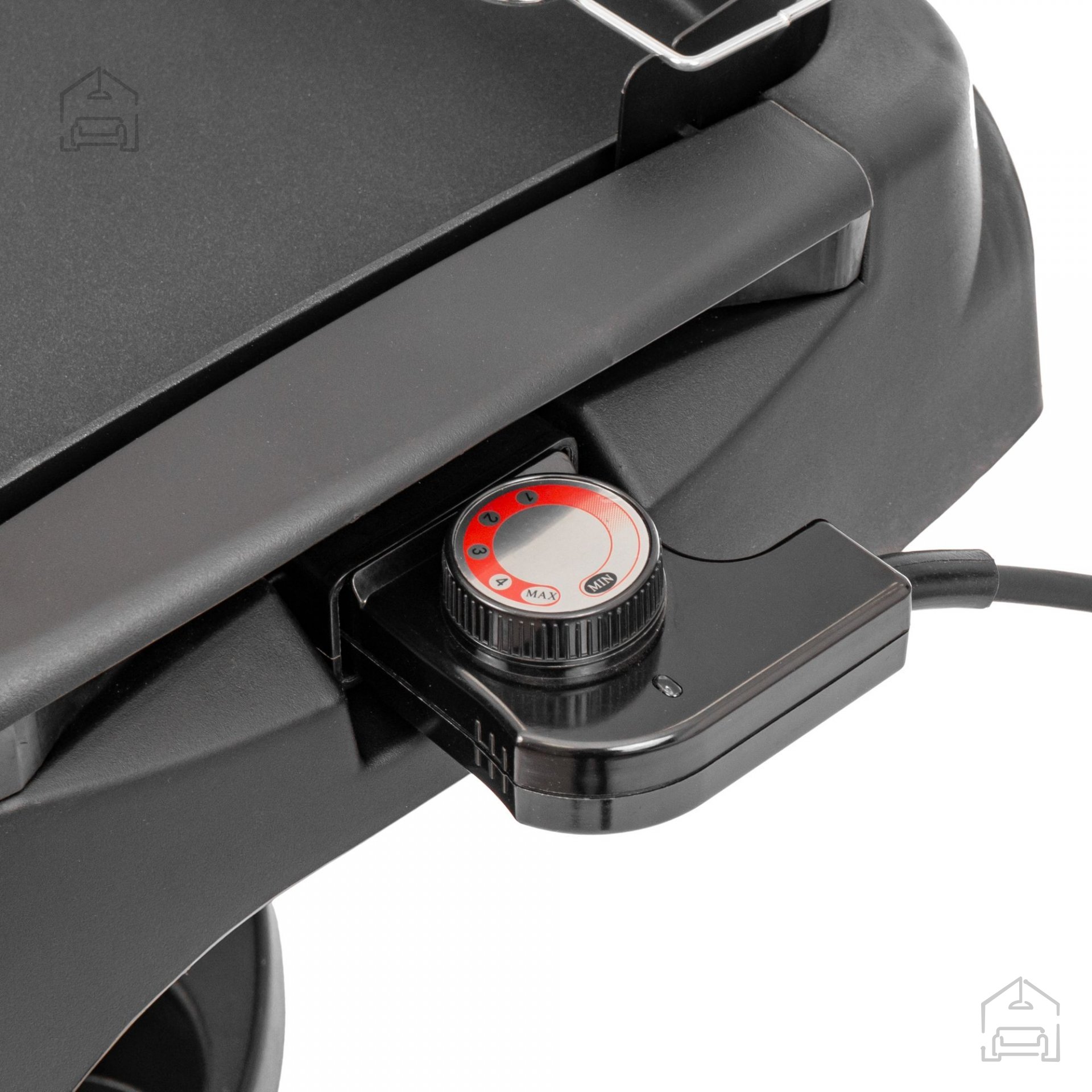 Funktionaler elektrischer Grill mit einstellbarer Leistung im Bereich von 1650 - 1950 W. Der Rost ist aus Aluminium gefertigt und zusätzlich mit einer Antihaftbeschichtung versehen, die die Zubereitung perfekt gebratener Speisen erleichtert. Die Grillfläche beträgt 1333 cm2 und ermöglicht das Braten von Speisen für mehrere Personen gleichzeitig. Ein externer Thermostat mit 5-stufiger Leistungsregelung ermöglicht es Ihnen, die Brattemperatur optimal an die Anforderungen der einzelnen Produkte anzupassen. Zum Warmhalten bereits zubereiteter Speisen funktioniert ein verchromtes Heizelement gut. Ein Vorteil des Grills ist ein spezieller Bereich mit Perforation für den Fettabfluss.