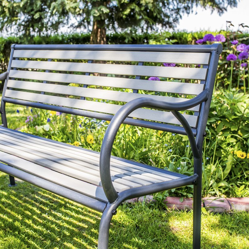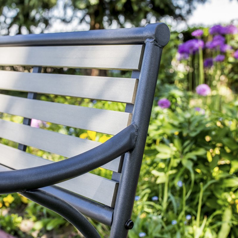 Die Kombination aus Metall und Verbundelementen verleiht der Bank ein ausgewogenes Erscheinungsbild, das sowohl zu Holz- als auch zu Steinflächen hervorragend passt. Aufgrund der neutralen Farbe lässt sie sich leicht mit anderen Gartenmöbeln kombinieren – mit Tischen, Stühlen oder Liegen in ähnlichen Farbtönen. Sie eignet sich für private Gärten, Terrassen, Balkone, aber auch für öffentliche Bereiche wie Parks, Innenhöfe oder Hotelgärten.