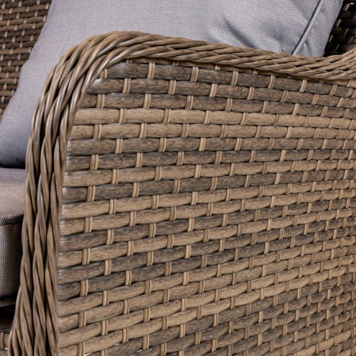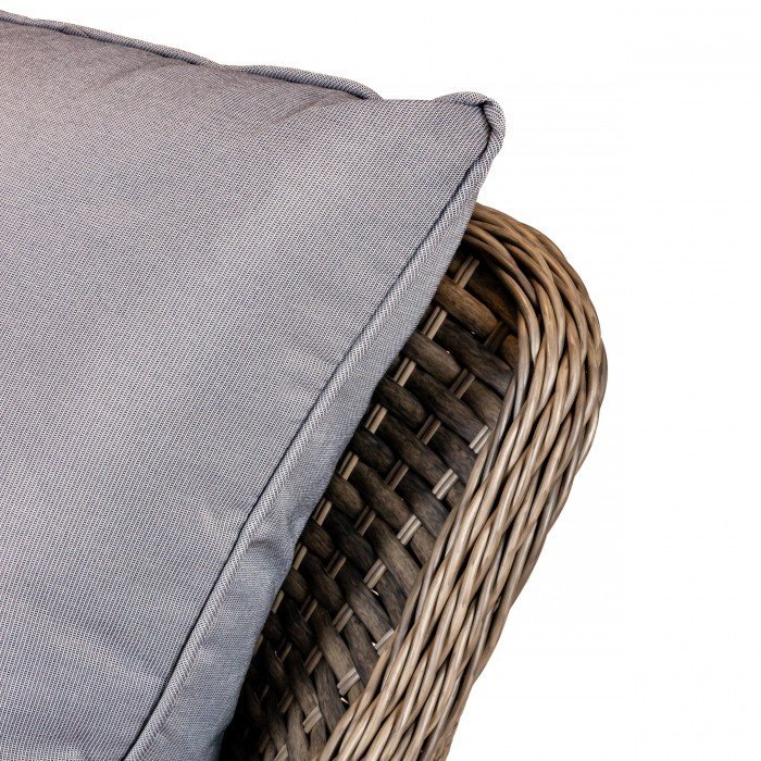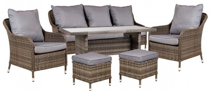 Sitze und Rückenlehnen sind mit dicken, weichen Kissen ausgestattet, die Komfort während der Entspannung bieten. Die Polyester-Kissenbezüge mit Reißverschluss können leicht aufgefrischt werden. Die Möbel sind auch optimal profiliert, was in Kombination mit den Armlehnen Entspannung in jeder Position ermöglicht. Der hohe Tisch des Sets ermöglicht bequemes Essen. Die Oberfläche aus gehärtetem Glas zeichnet sich durch hohe Kratzfestigkeit aus und ist ebenso leicht von Schmutz zu reinigen.