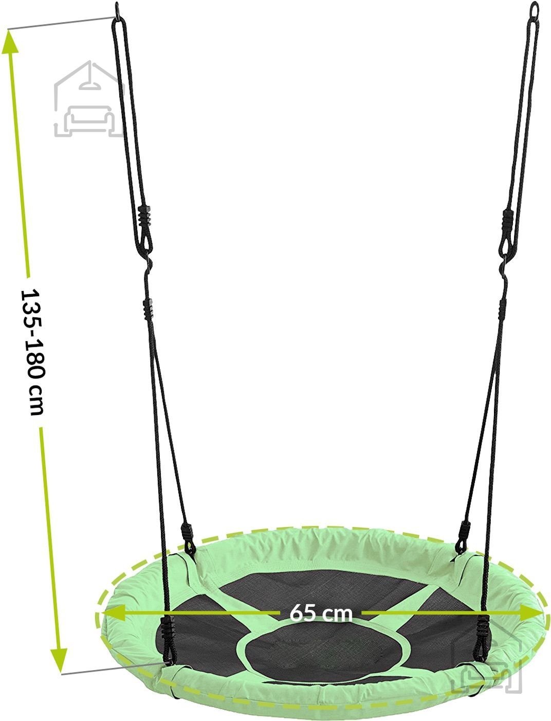 Wenn Sie sich einen Moment der Entspannung an der frischen Luft wünschen oder den Kindern ein sicheres und unterhaltsames Spiel bieten möchten, ist die Hängeschaukel Nest 65 in grüner Farbe eine ausgezeichnete Wahl. Mit einem Durchmesser von 65 cm ist sie so konzipiert, dass sie ein angenehmes Schaukeln und bequemes Sitzen in verschiedenen Positionen ermöglicht. Ihr modernes, aber zugleich natürliches Erscheinungsbild fügt sich harmonisch in die Umgebung des Gartens, der Terrasse oder sogar der Innenräume ein, wo sie zu einer interessanten Ergänzung des Kinderzimmers oder einer Entspannungsecke werden kann.