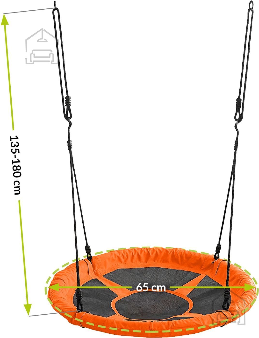 Wenn sich die warmen Tage über den Garten ausdehnen und die Kinder neue Spielmöglichkeiten suchen, wird die Schaukel Nest 65 zum beliebten Mittelpunkt ihrer Aufmerksamkeit. Diese Hängeschaukel mit einem Durchmesser von 65 cm ist für entspanntes Schaukeln, sicheres Spielen und angenehme Momente im Freien konzipiert. Ihr runder Sitz in kontrastreicher Kombination aus Orange und Schwarz bringt jedem Garten, jeder Terrasse oder sogar dem Kinderzimmer einen lebhaften Akzent. Dank der durchdachten Konstruktion und der langlebigen Materialien ist sie für den täglichen Gebrauch geeignet und kann gleichzeitig leicht bewegt oder verstaut werden, wenn sie nicht in Gebrauch ist.