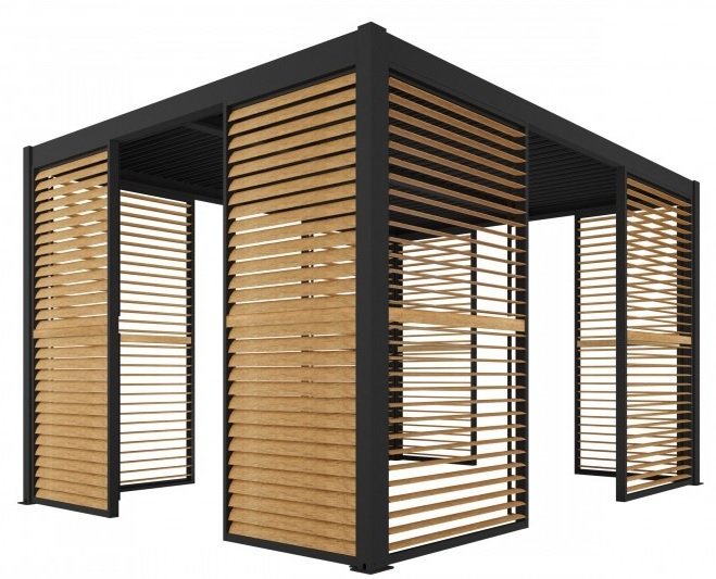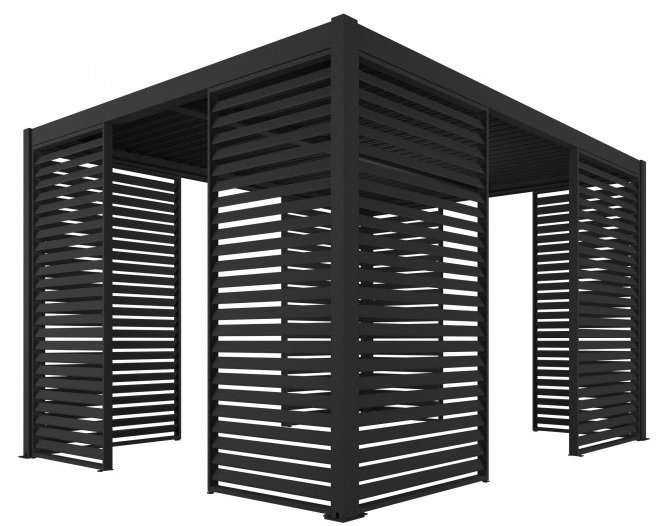 Die Überdachung kann optimal an individuelle Bedürfnisse angepasst werden – nicht nur durch die Einstellung des Daches, sondern auch durch die Möglichkeit der Erweiterung. Für die Pergola können elektrische Markisen mit 3 oder 4 Metern oder Rollladenpaneele gekauft werden. Die Konfiguration der Wände ermöglicht es Ihnen, ein integriertes Dach zu schaffen, das Ihnen auch bei ungünstigerem Wetter Entspannung bietet.