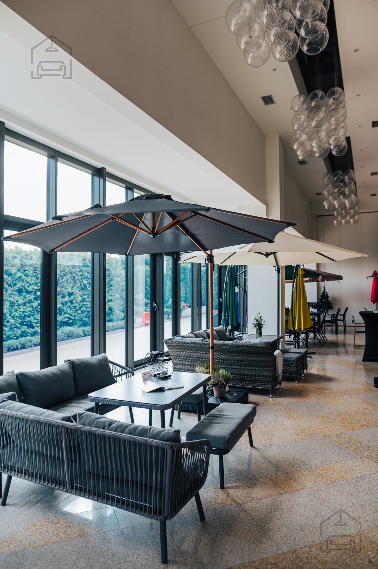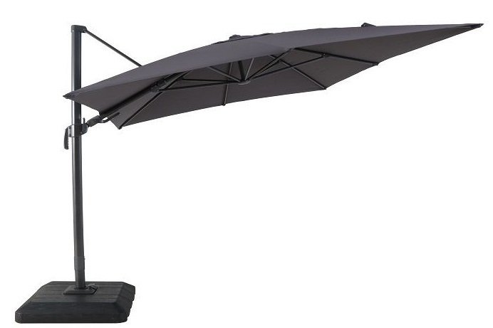 Die stahlene Kreuzbasis sorgt für zusätzliche Stabilität und ermöglicht gleichzeitig die Verwendung verschiedener Arten von Gewichten oder Bodenbefestigungen, abhängig vom Untergrund. Dadurch eignet sich der Schirm sowohl für private Gärten als auch für Terrassen von Restaurants, Cafés oder Hotelanlagen, wo eine Kombination aus Ästhetik und Zweckmäßigkeit erforderlich ist.