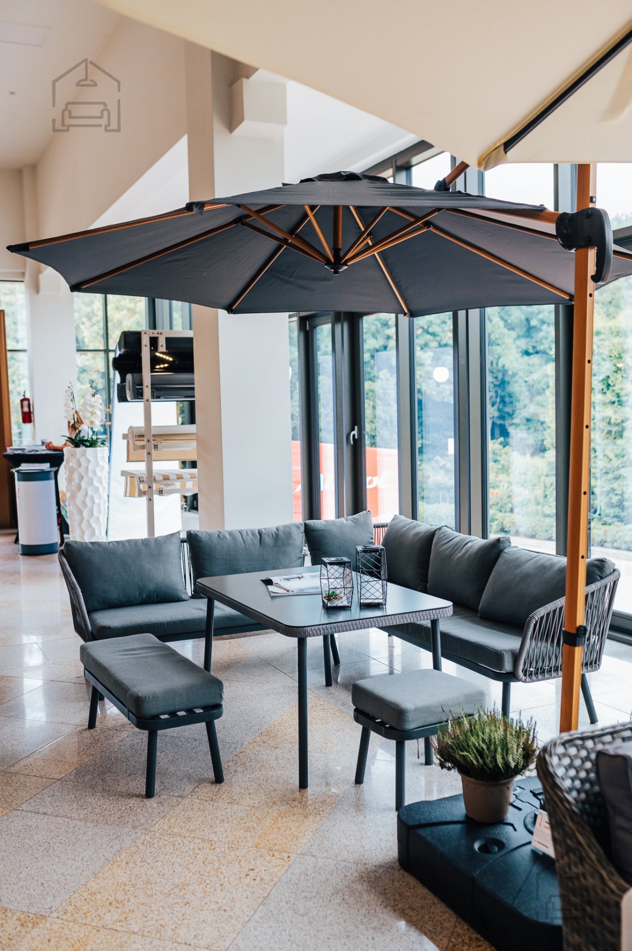 Einer der größten Vorteile des Roma S Schirms ist seine Benutzerfreundlichkeit. Er ist mit einem Handmechanismus ausgestattet, der ein sanftes und sicheres Öffnen und Schließen ermöglicht. Dank des Systems zur Einstellung des Neigungswinkels des Daches kann die Beschattung je nach Sonnenstand angepasst werden – von den Morgenstunden bis zum Nachmittag. Außerdem verfügt er über einen Drehmechanismus im Sockel, der eine 360-Grad-Einstellung ermöglicht, was bedeutet, dass die Schattenrichtung geändert werden kann, ohne die gesamte Konstruktion zu bewegen. Diese Funktionalität ist besonders auf Terrassen oder größeren Gartenflächen nützlich, wo sich die Sonne im Laufe des Tages bewegt und Flexibilität entscheidend ist.