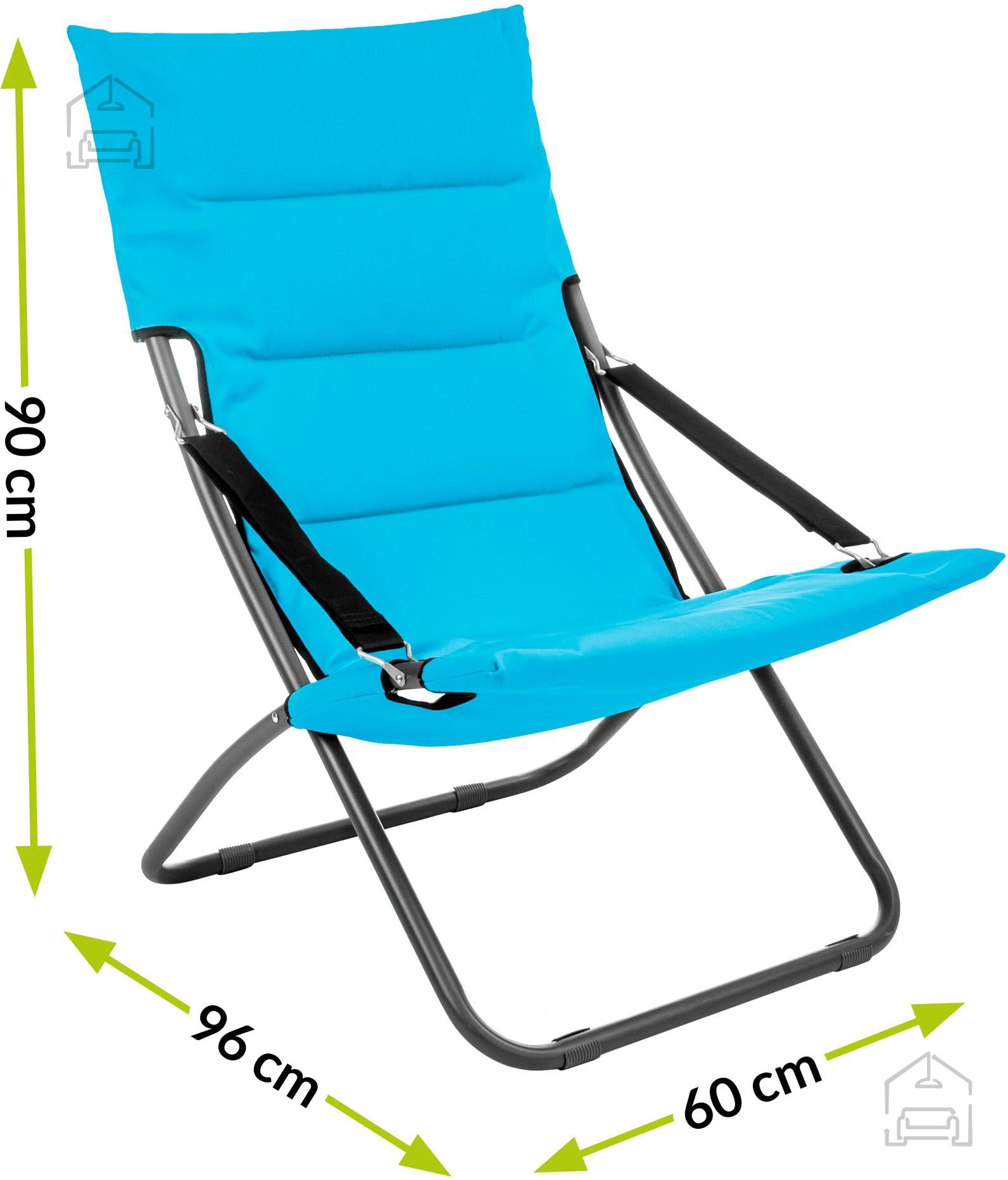 - Praktikabilität und Tragbarkeit: Die Liege Verde ist mit Blick auf Praktikabilität entworfen. Ihr klappbares Design ermöglicht einfaches Tragen und Aufbewahren, was ideal für diejenigen ist, die gerne reisen oder an verschiedenen Orten genießen, wie Strand, Pool oder Camping. Dank der kompakten Maße von 60 x 96 x 90 cm kann sie problemlos auch in kleineren Räumen aufgestellt werden.