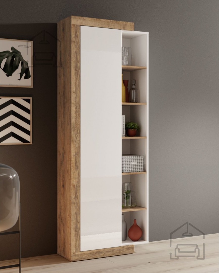Die Vitrine Sintra ist nicht nur ein Möbelstück; sie ist ein Ausdruck Ihres Geschmacks und Stils. Die elegante Kombination aus Eiche und hochglänzendem Weiß verleiht jedem Raum einen Hauch moderner Raffinesse. Ihre Geräumigkeit und Praktikabilität sind ideal für alle, die zusätzlichen Stauraum benötigen, ohne dabei auf Stil verzichten zu müssen.