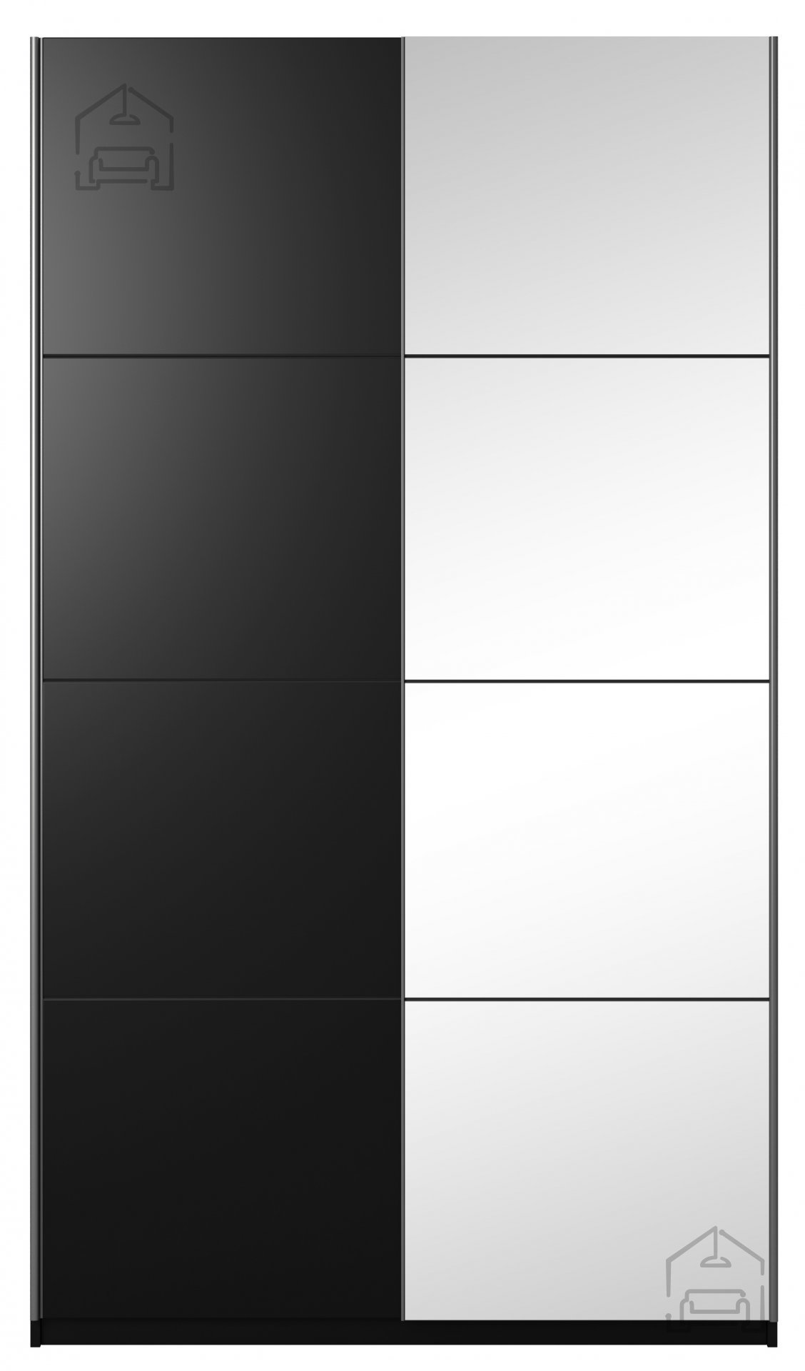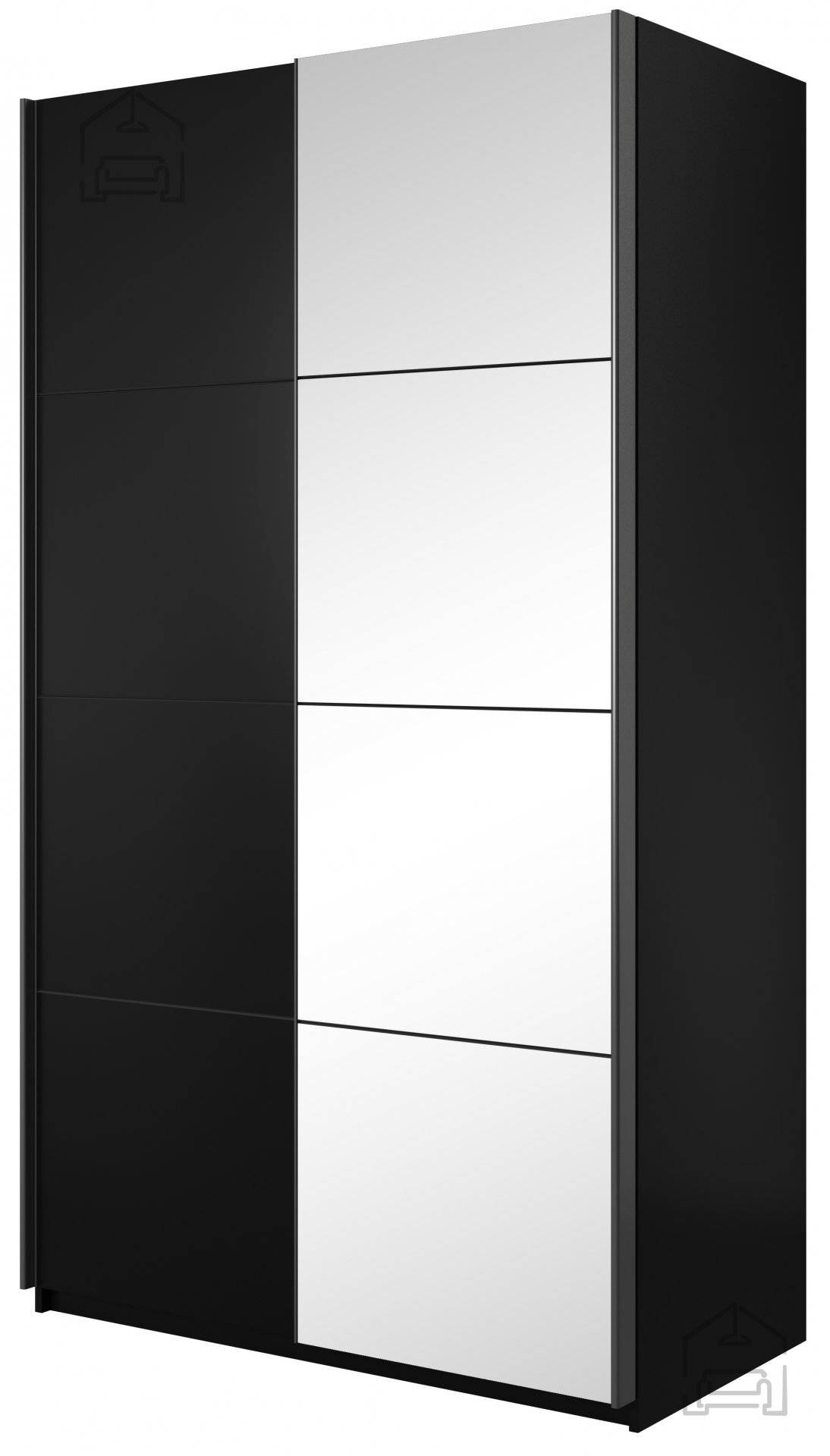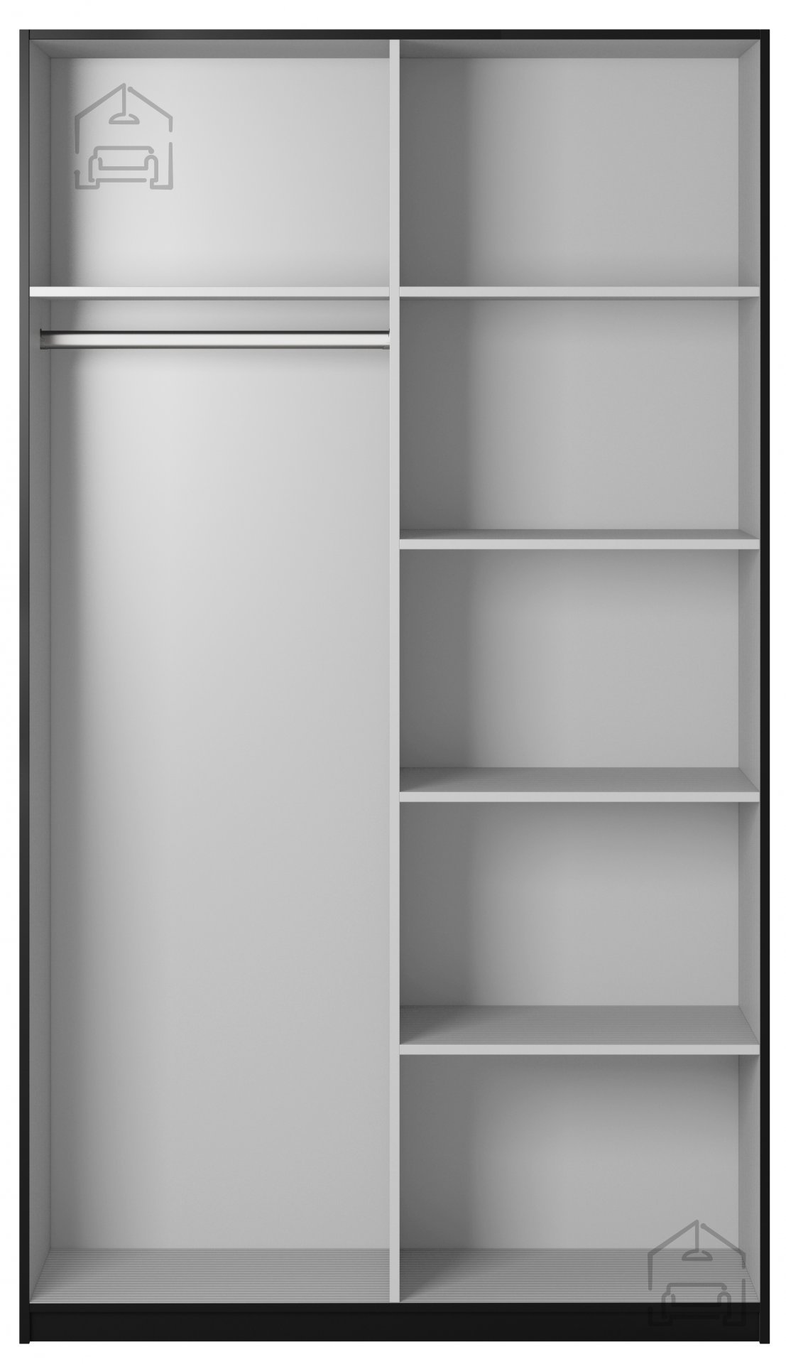 Wir präsentieren Ihnen den eleganten und funktionalen Kleiderschrank Beta mit den Maßen 120x61x210 cm, der eine perfekte Kombination aus Stil und Praktikabilität bietet. Dieser wunderschöne Schrank ist aus hochwertiger Spanplatte gefertigt, was Langlebigkeit und eine lange Nutzungsdauer garantiert. Die schwarze Farbe des Korpus und der Fronten, zusammen mit dem integrierten Spiegel, schaffen ein modernes und anspruchsvolles Erscheinungsbild, das sich mühelos in verschiedene Wohnräume einfügt.
