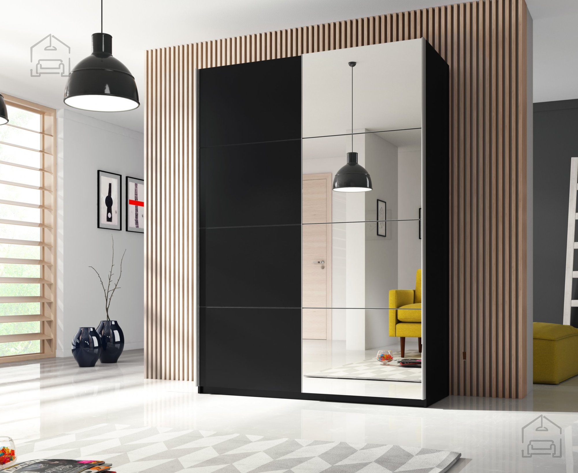 Der Kleiderschrank Beta ist die ideale Wahl für alle, die eine perfekte Kombination aus Funktionalität und Ästhetik suchen. Sein durchdachtes Design ermöglicht eine maximale Raumausnutzung, während die eleganten schwarzen Töne und der Spiegel einen Hauch von Prestige verleihen. Dieser Schrank verbessert nicht nur die Organisation Ihres Raumes, sondern trägt auch zu einem wunderschönen visuellen Eindruck Ihres Zuhauses bei.