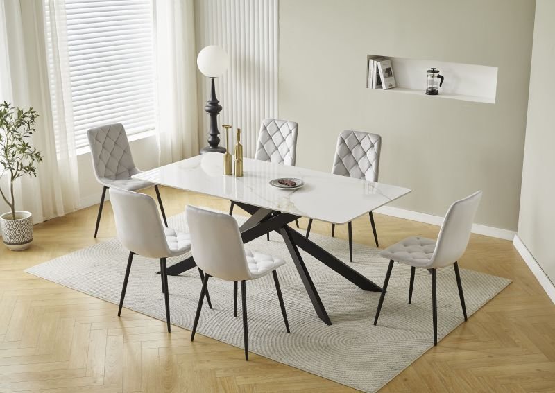 • Wunderschöner Esstisch in Kombination aus modernem Stil und grauem Marmor-Muster.