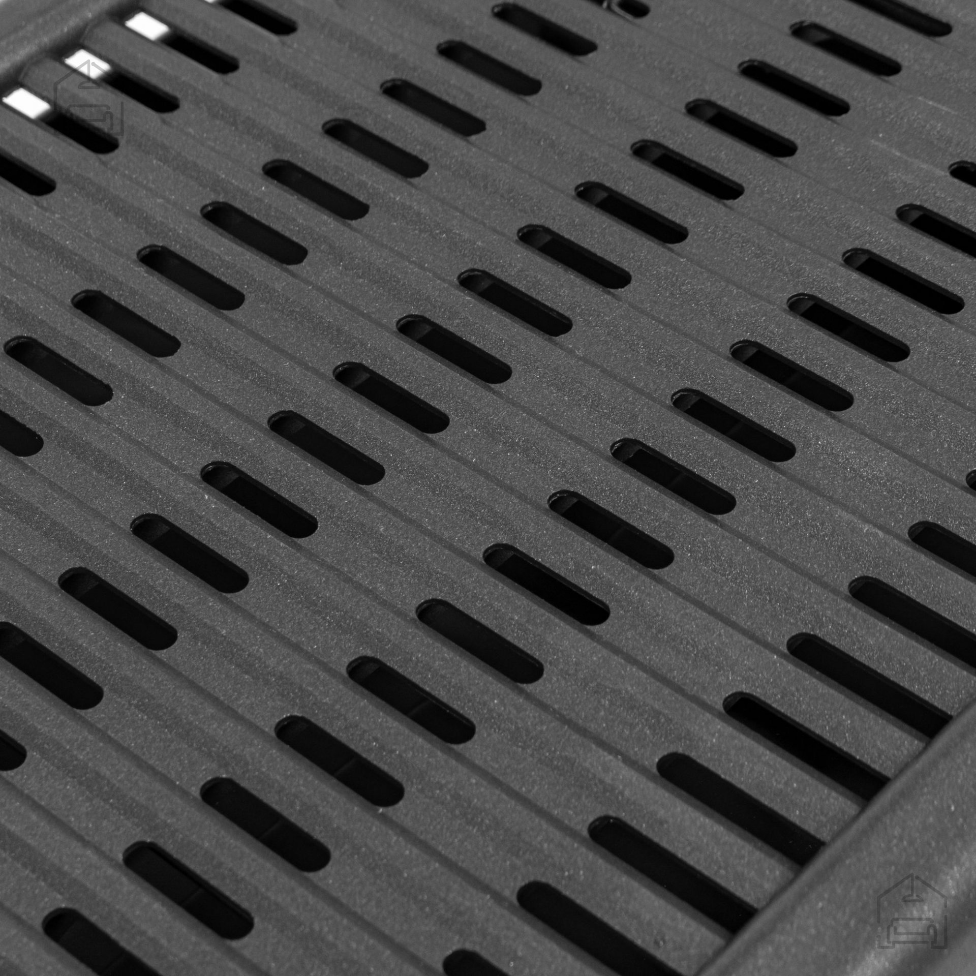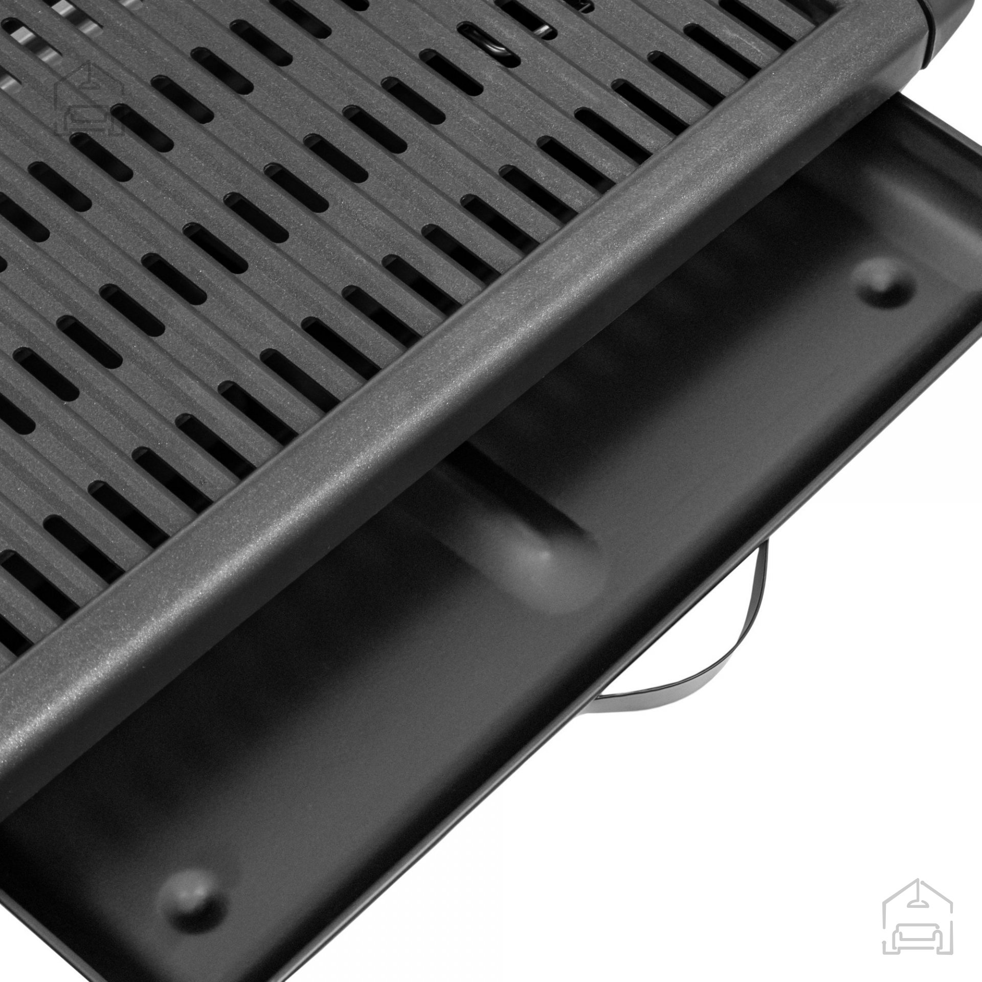 Der Rost aus Aluguss ist mit einer Antihaftbeschichtung versehen, die eine fettarme Zubereitung ermöglicht und verhindert, dass Zutaten ankleben. Nach dem Gebrauch lässt er sich leicht mit einem weichen Schwamm und mildem Reinigungsmittel säubern. Für zusätzlichen Komfort befindet sich unter dem Rost eine herausziehbare Fettauffangschale, die die Reinigung erleichtert und dafür sorgt, dass die Arbeitsfläche stets sauber bleibt.