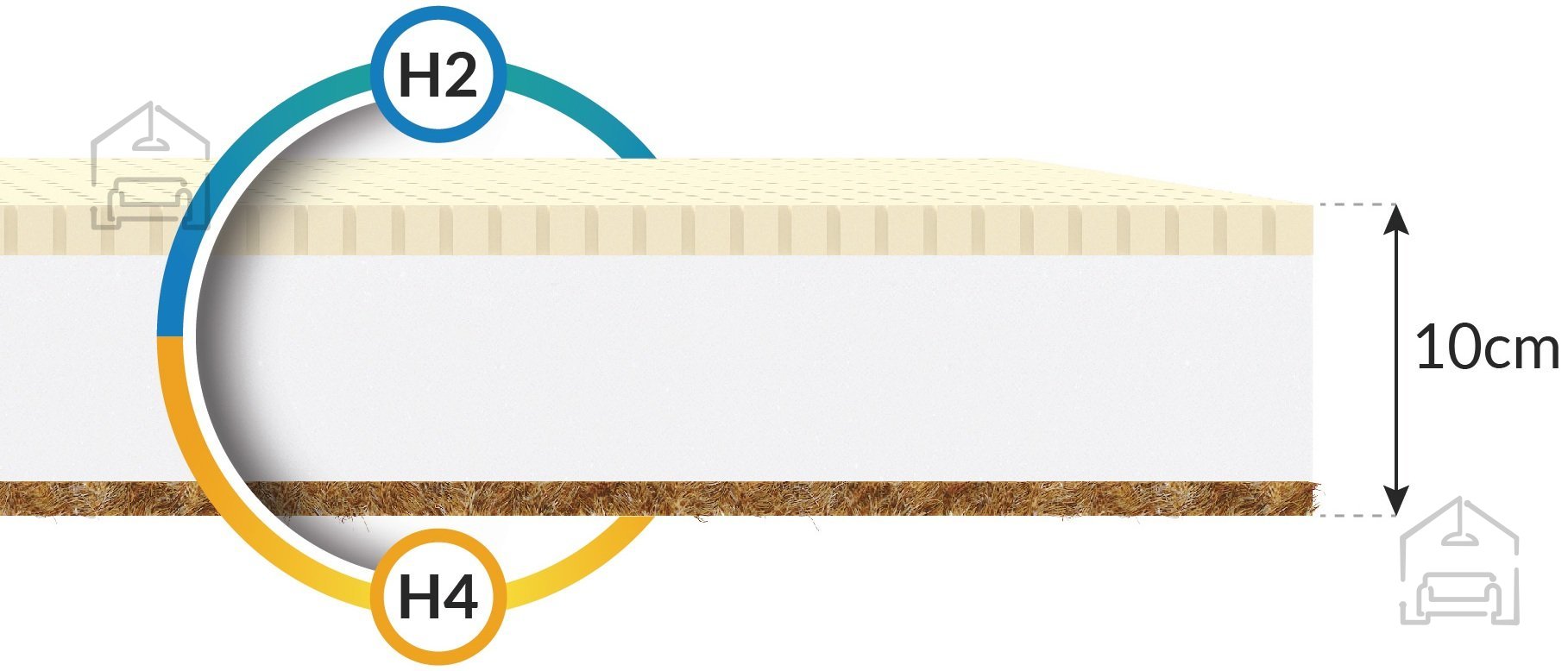 • Bestandteile: Kokosfasern, perforierter Latex, Klimafasern, Polyurethanschaum T25